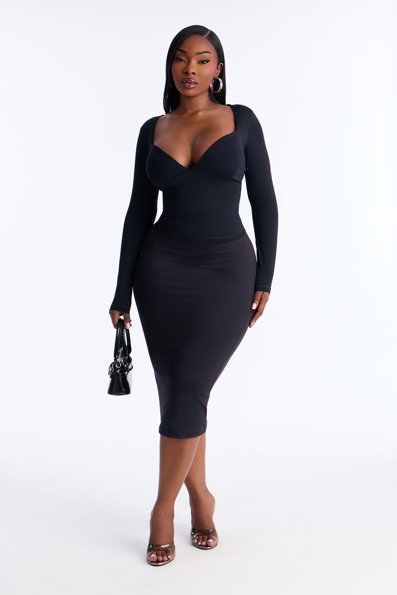 Contour Double Lined Pencil Midi Skirt - Black Female