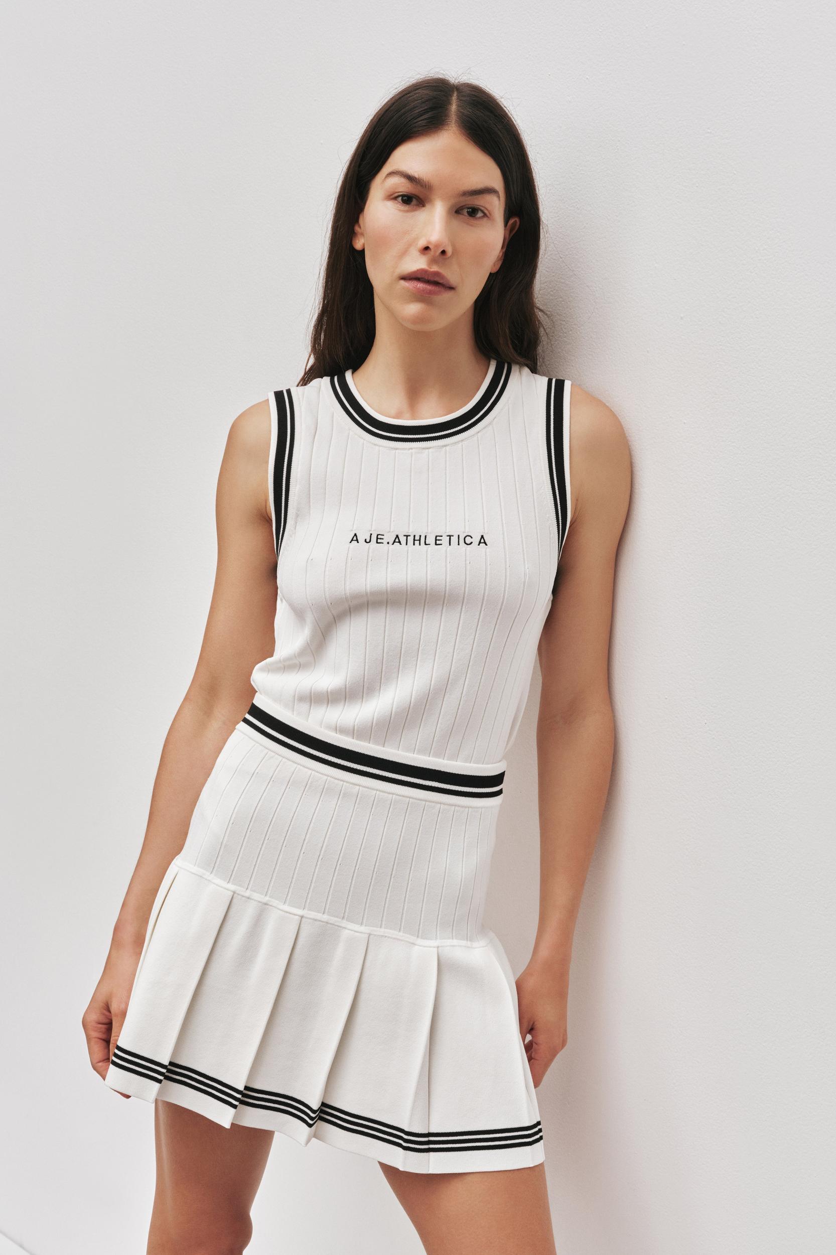 Contrast Knit Pleated Skirt 628-WHITE / 4