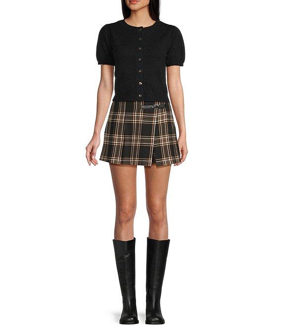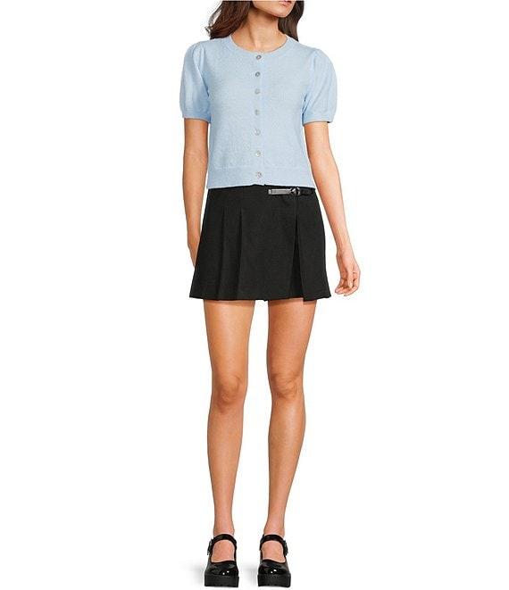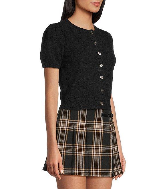 Copper Key Button Front Puff Sleeve Cardigan
