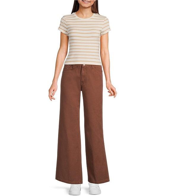 Brown Mid Rise Wide Leg Jeans