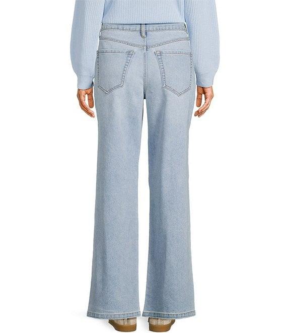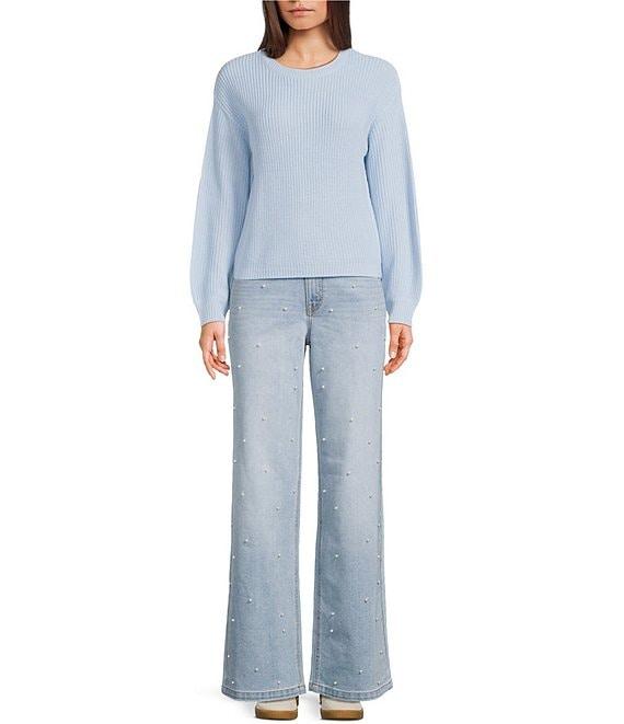 From Copper Key, these jeans feature: Denim fabrication Mid rise Front button/zip closure Belt loops 5-pocket styling Full length 31" inseam Wide legs Pearl embellishment detail Cotton/recycled polyester/rayon/spandex Machine Wash/Tumble Dry Imported.