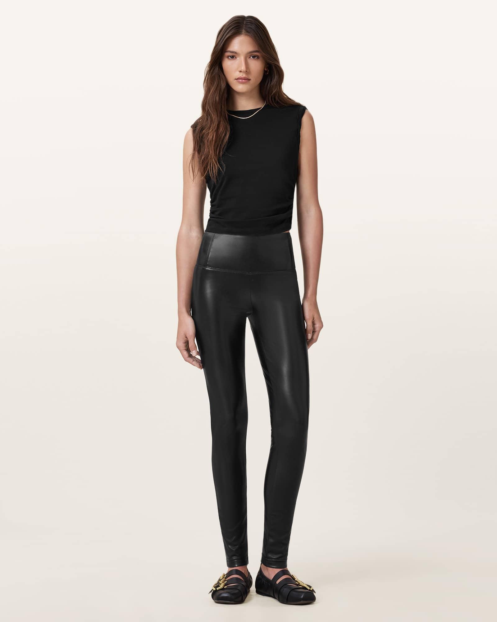 Toughen up your wardrobe with the Cora Leggings. They're high-waisted and skinny, creating a flattering fit that accentuates the legs. The perfect piece for wearing with oversized sweaters and tees – casual dressing, amped up. These leggings are designed to a bodycon fit Super skinny High-rise Deep waistband Ankle length