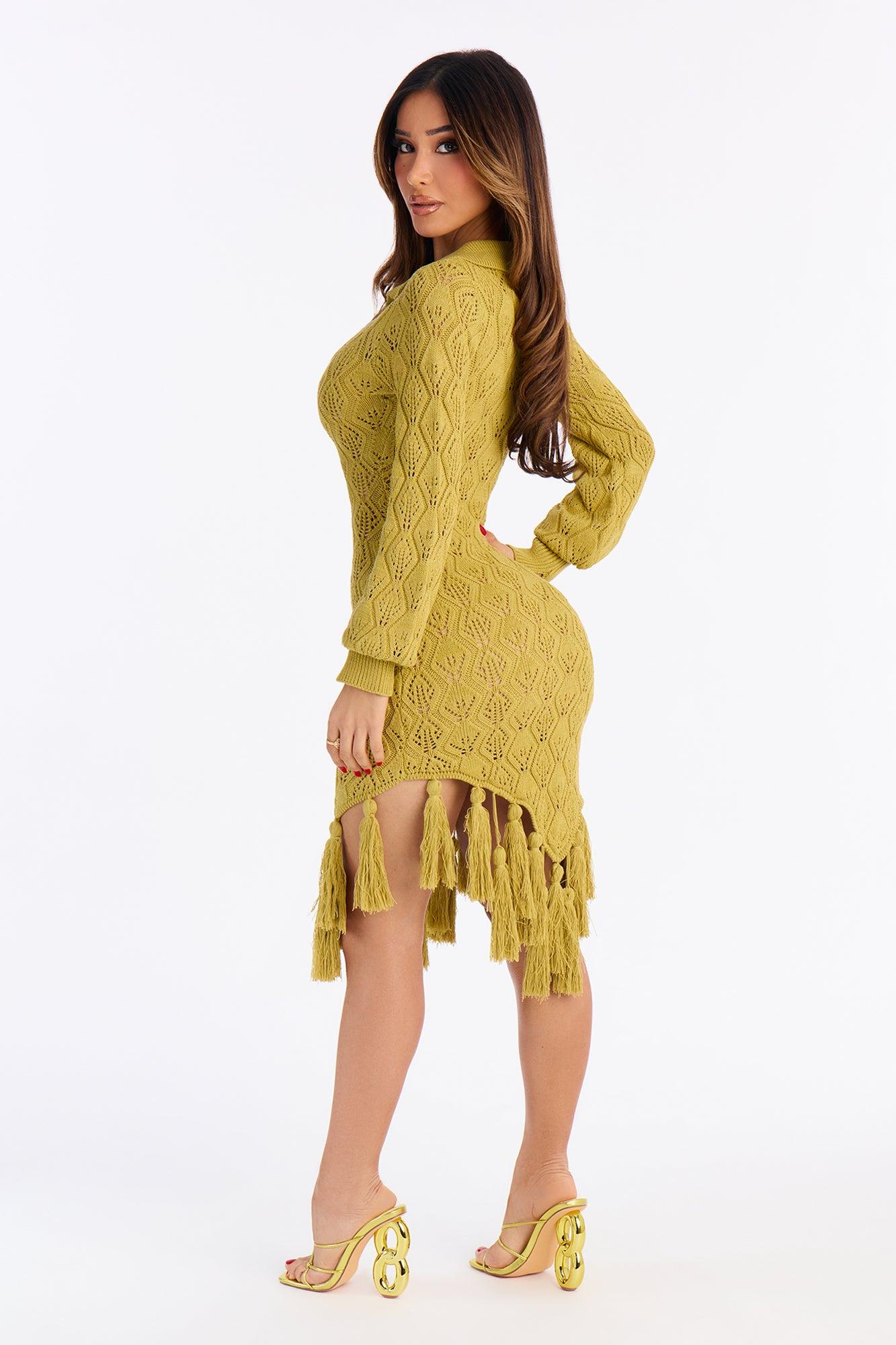Cora Tassel Trim Crochet Mini Dress - Olive Female