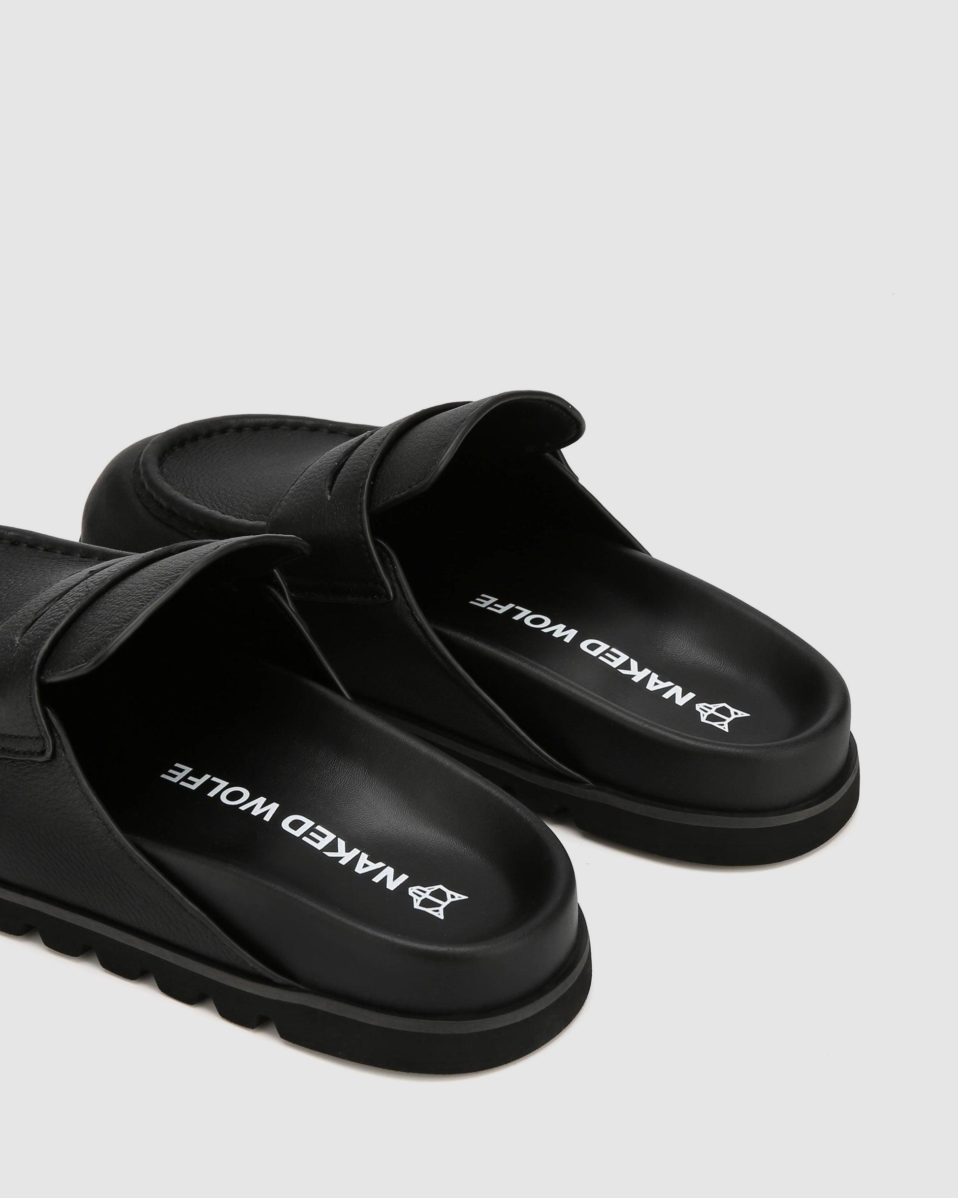 The Cord Mule. Made from hairy cow suede uppers and soft tumbled pebble leather. Designed with a custom exaggerated last shape that pairs perfectly with flowy or baggier pants. Features an ultra-soft custom leather footbed, finished with a micro-cell custom Naked Wolfe outsole.