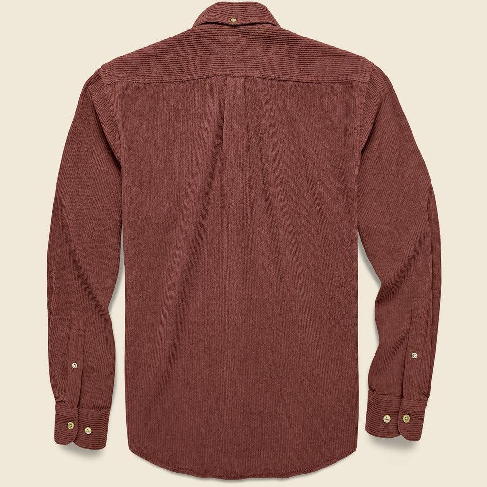 The Corduroy Lobo Shirt Shirt from Portuguese Flannel is made out of super-soft, wide-wale cotton corduroy that’s cut with a traditional fit that’s easy to wear every day, all year long. Finished in a classic Oxford style, it’s got a button-down collar, a patch pocket at the chest, adjustable cuffs, and button front closure to round things out. Soft wide-wale cotton corduroy Patch pocket at left chest Button placket with button-down collar Curved hem Adjustable button cuffs Traditional fit that runs true to size We recommend taking your normal size or taking one size up for a more relaxed fit Made in PortugalMaterials: 100% cotton The following measurements are for size medium: Chest: 42“ | Shoulder: 16“ | Sleeve: 33“ | Length: 29“
