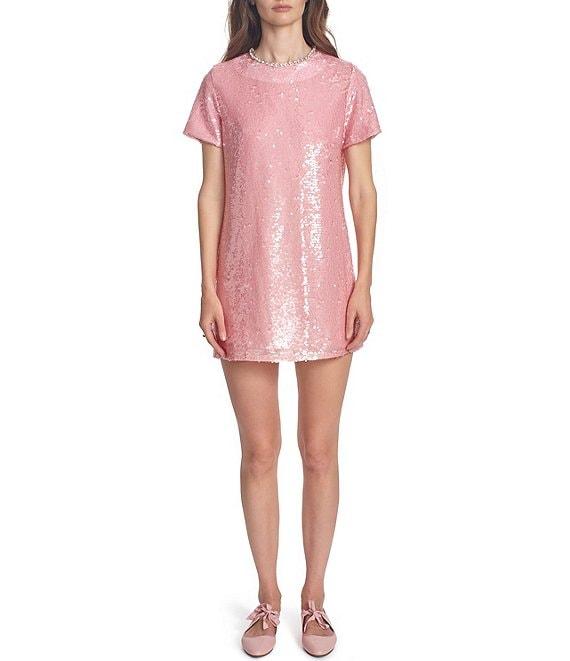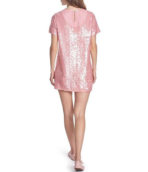 COREY LYNN CALTER Aida Sequin Mesh Round Neck Short Sleeve Dress