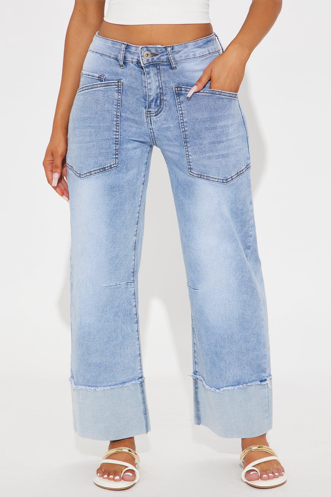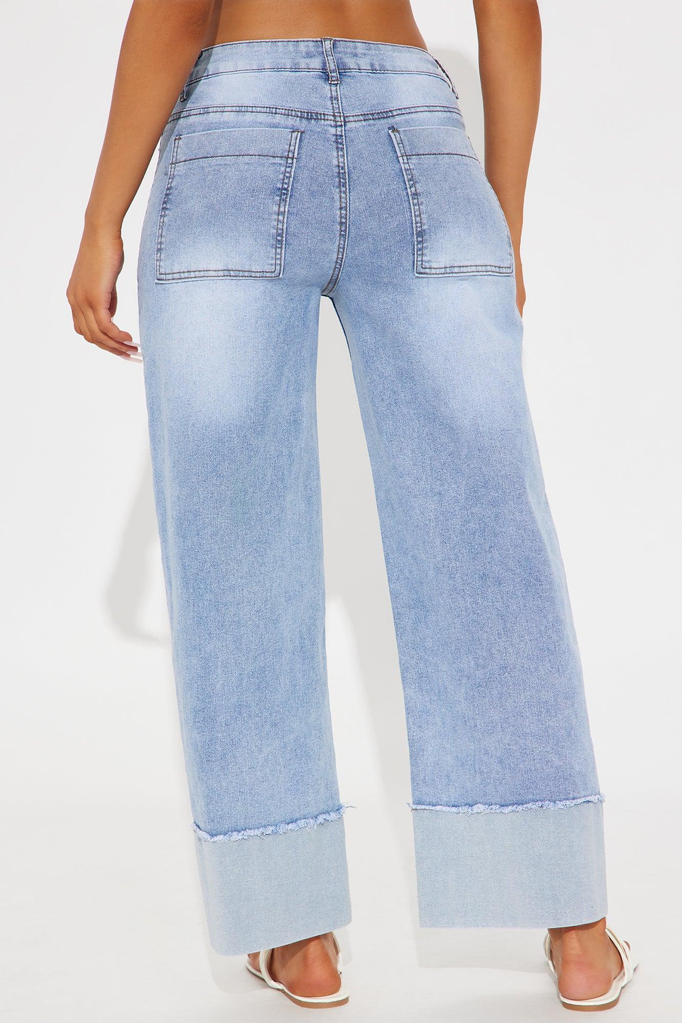 Available In Light Wash. Straight Leg Jean 5 Pocket Cuffed Hem 10" Mid Rise 27" Inseam Medium Stretch Disclaimer: Due To The Specialized Wash, Each Garment Is Unique. 75% Cotton 18% Polyester 5% Rayon 2% Spandex Imported