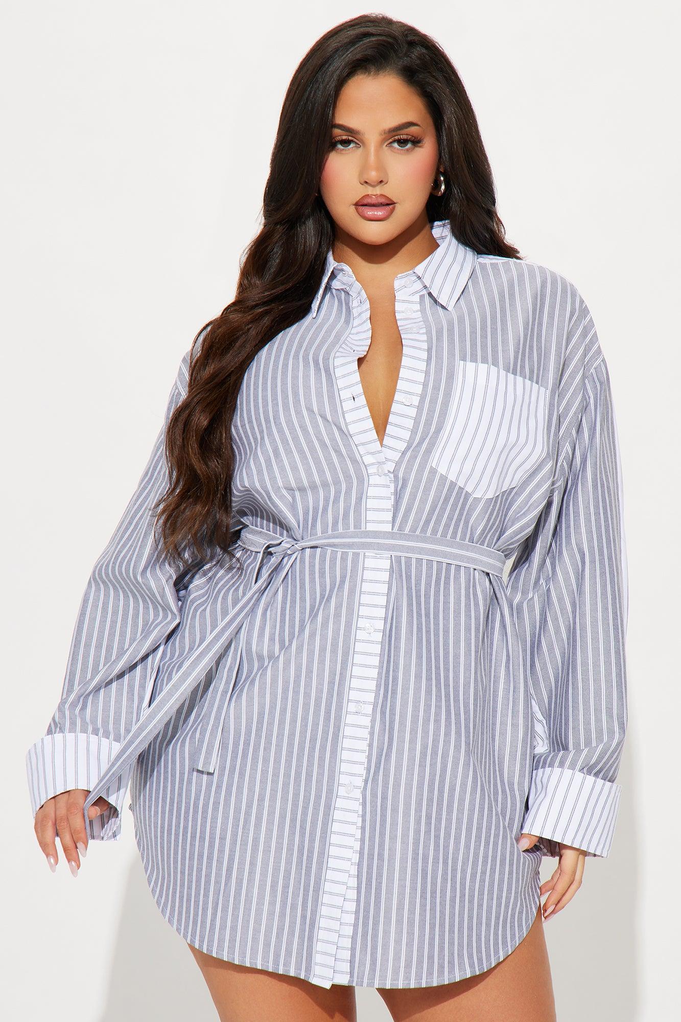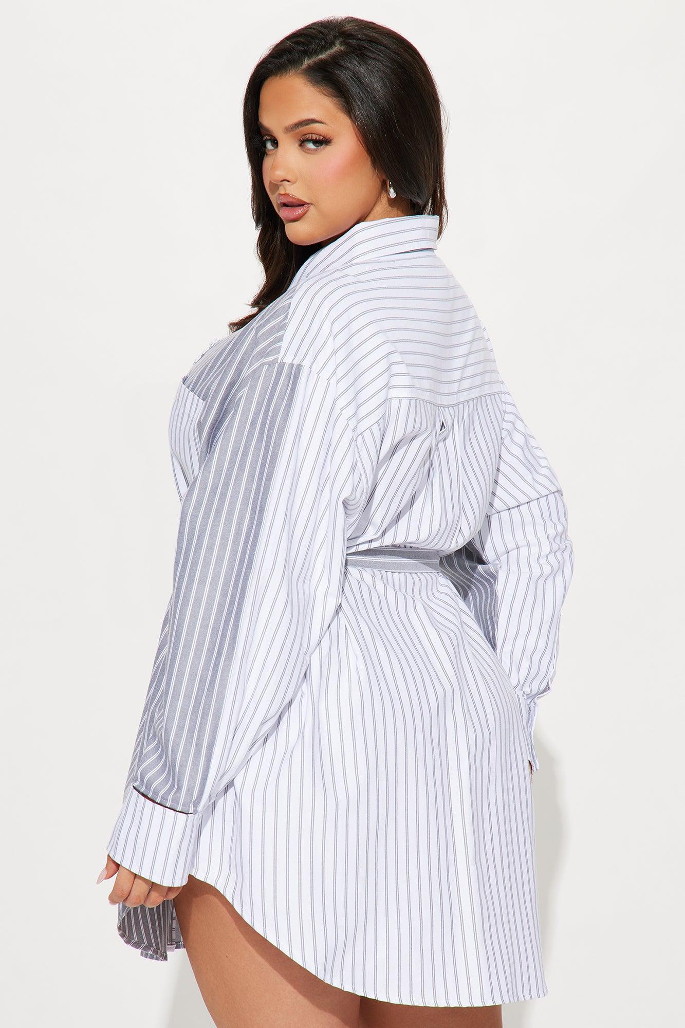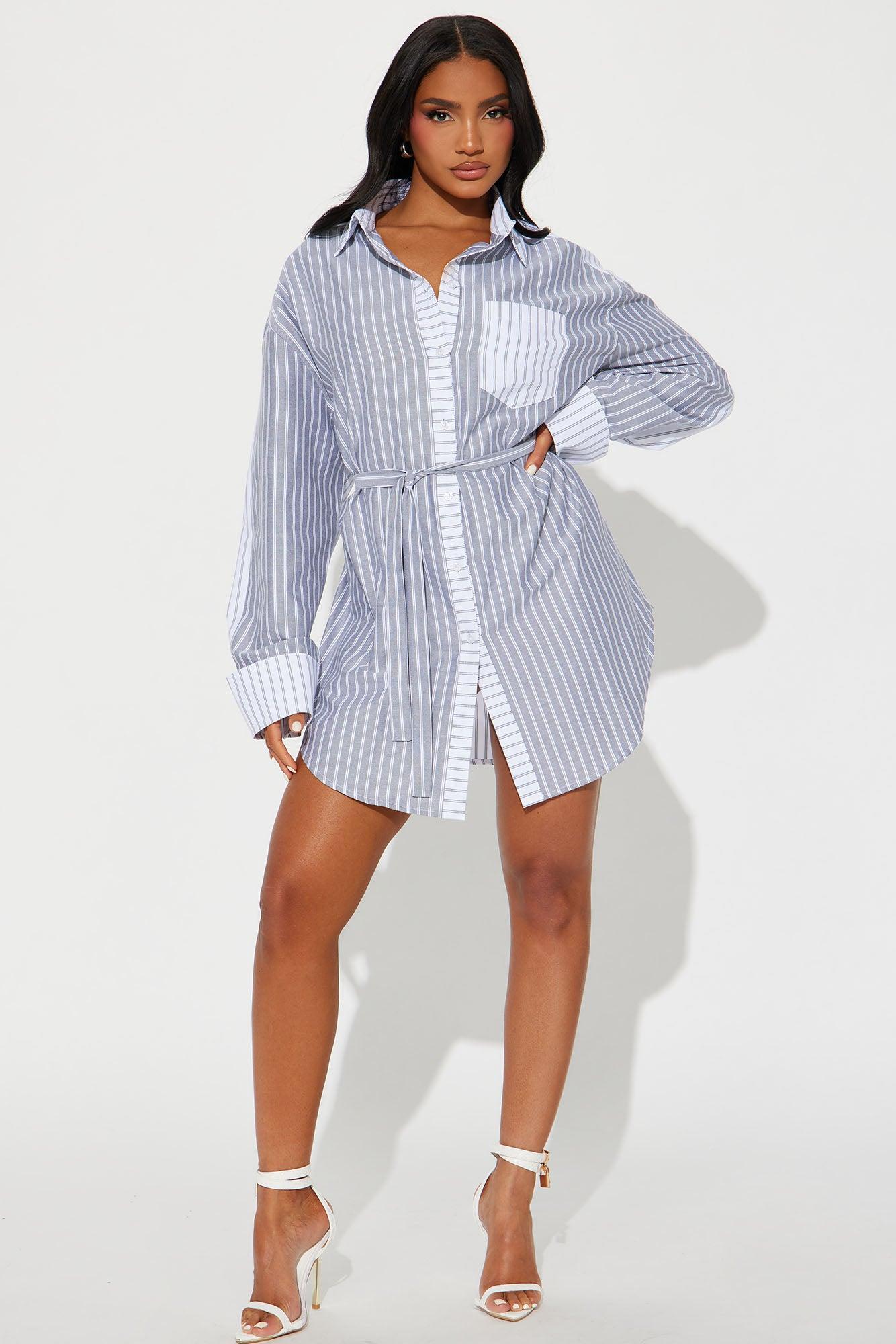 Corporate Baddie Mini Shirt Dress - Grey/combo