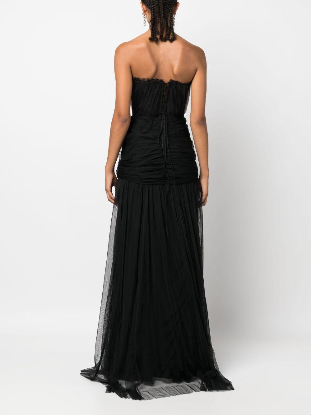corset-style draped maxi dress