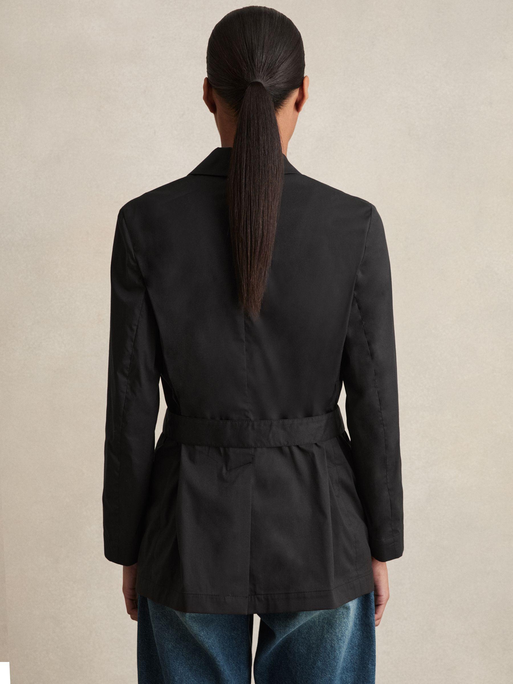 The Osbourne jacket redefines soft tailoring with its cotton-blend poplin composition, relaxed shoulders, and self-tie belt. Cut to a double-breasted silhouette, it’s finished with classic notch lapels for a polished yet effortless look. Cotton-blend poplin. Double-breasted. Self-tie belt. Notch lapels. Single vent to reverse.
