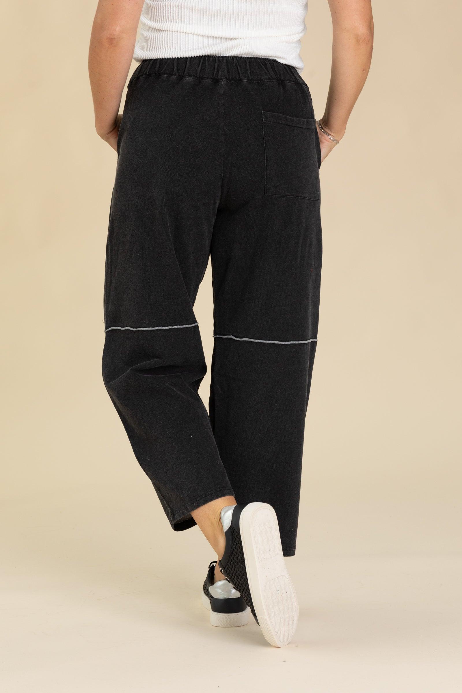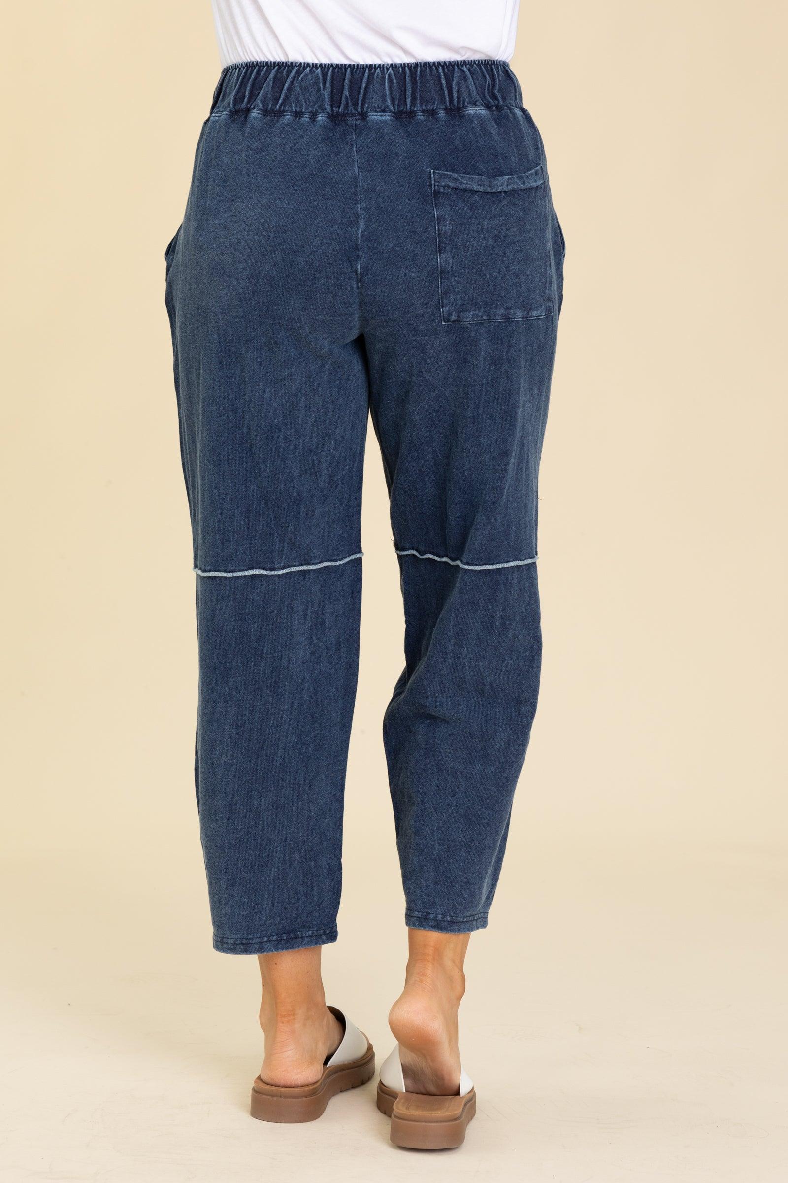 Product Details Colors: Denim Print: Solid Style: Crop Pants Brand: Mono B Material and Care 94% Cotton 6% Spandex Machine Wash Cold Tumble Dry Low Size and Fit Small: Waist 30" Rise 12" Inseam 26" Medium: Waist 32" Rise 12.5" Inseam 26" Large: Waist 34" Rise 13" Inseam 26" Erica is 5’7” wearing a size small