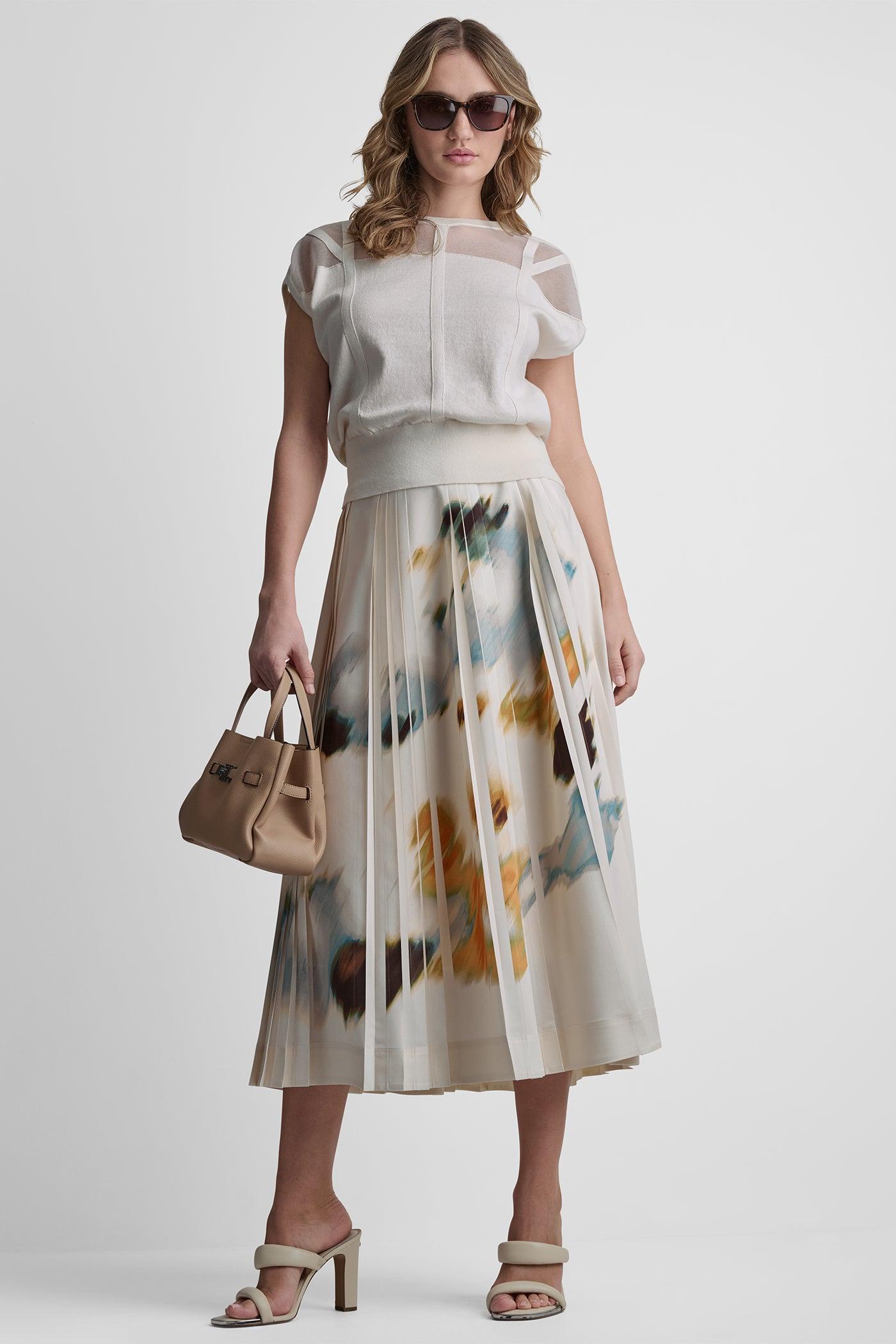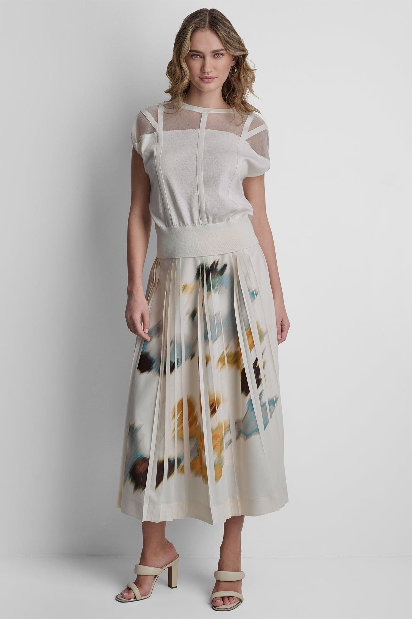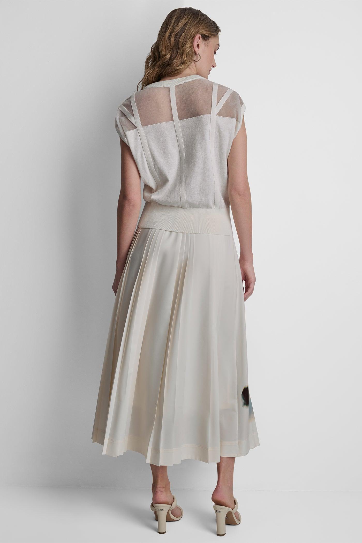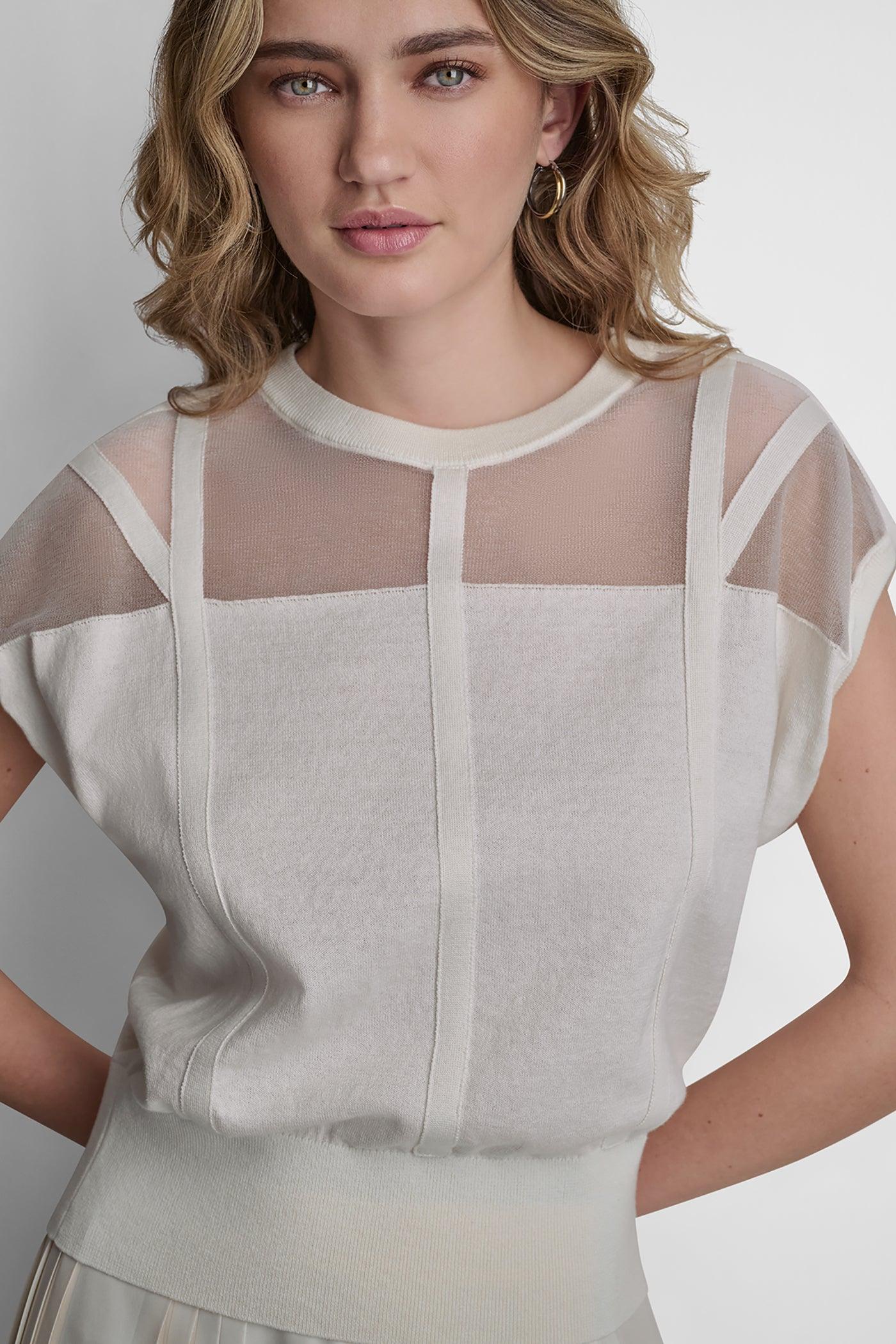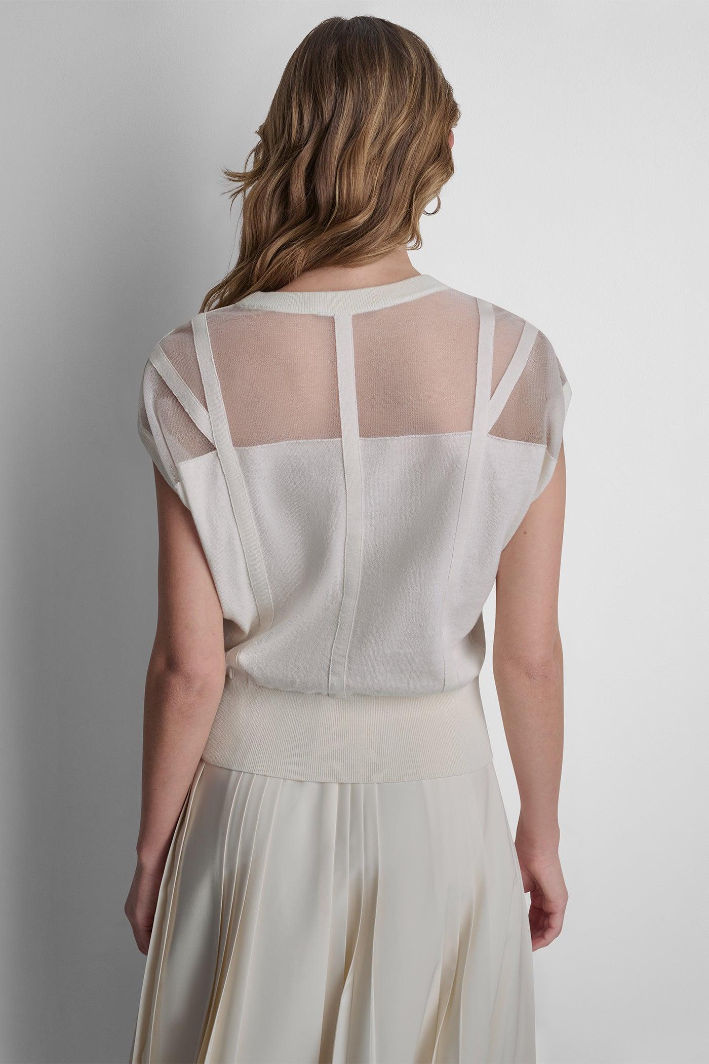 COTTON-BLEND SLEEVELESS CORSET SEAM SWEATER