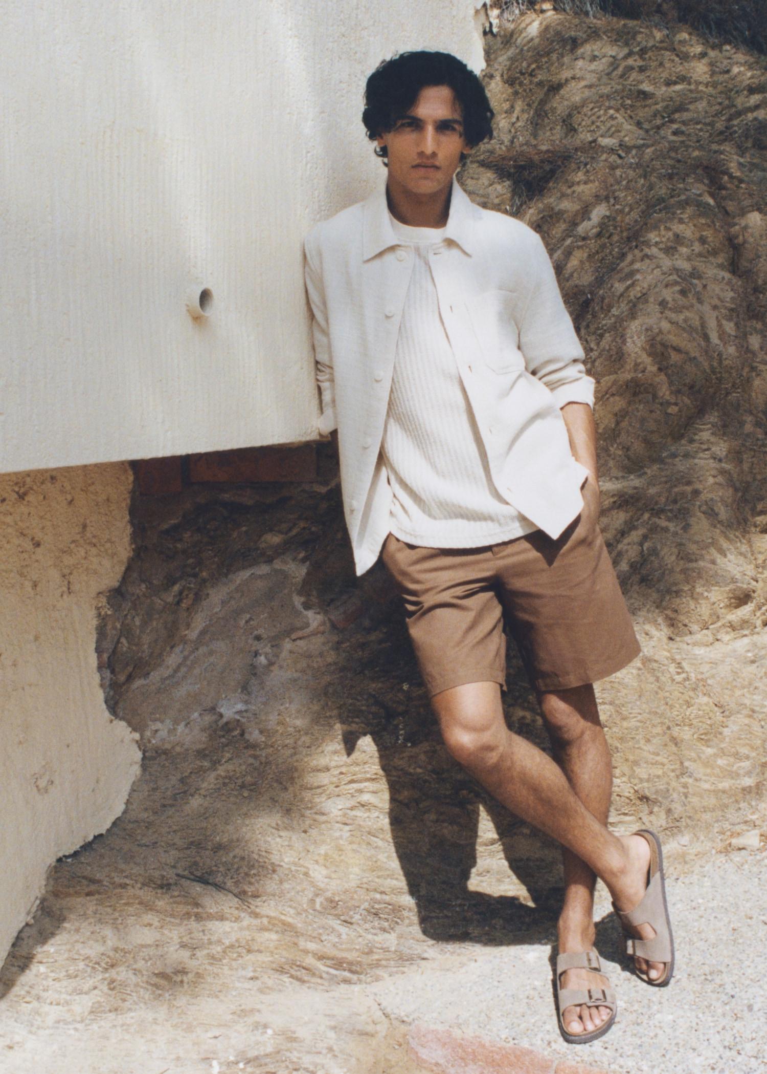 Cotton-linen blend bermuda shorts - Men | MANGO USA
