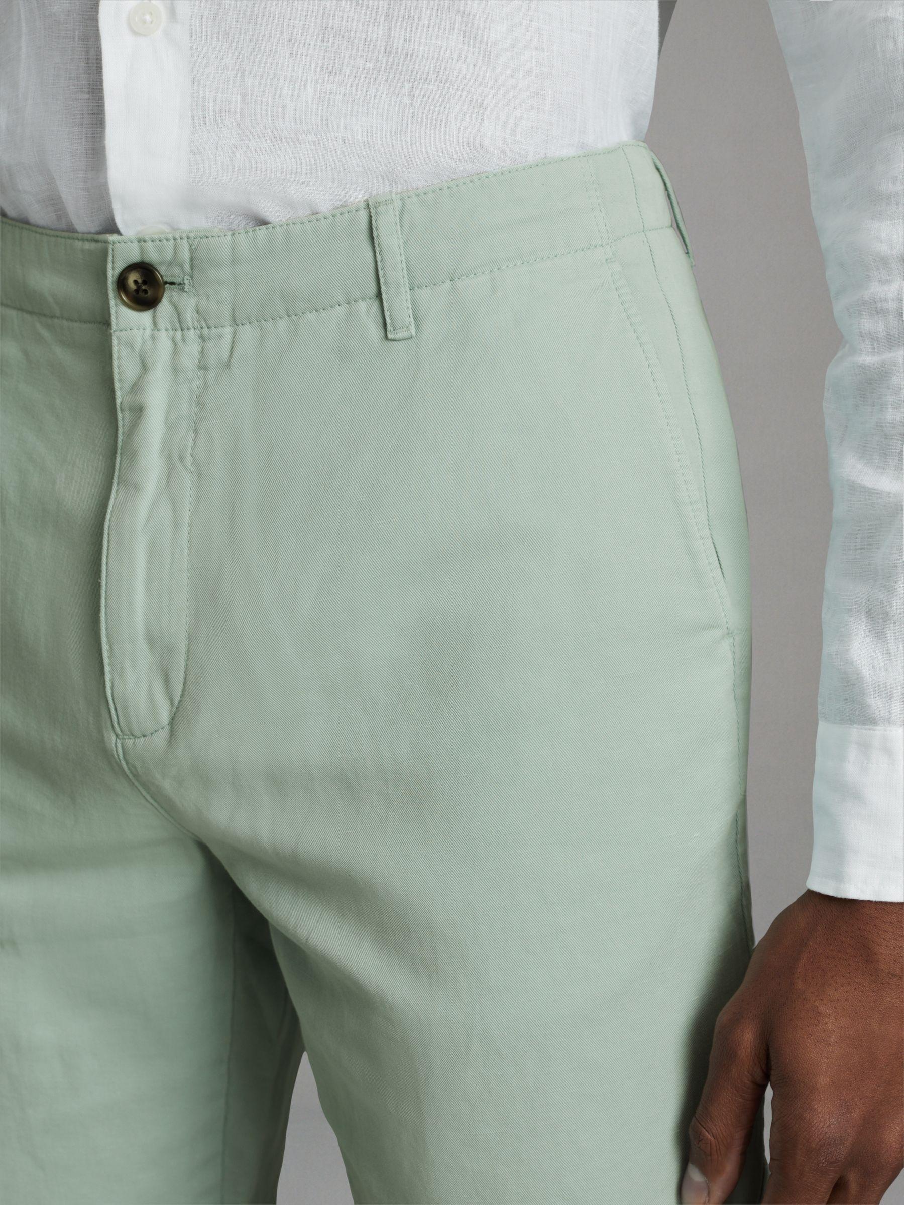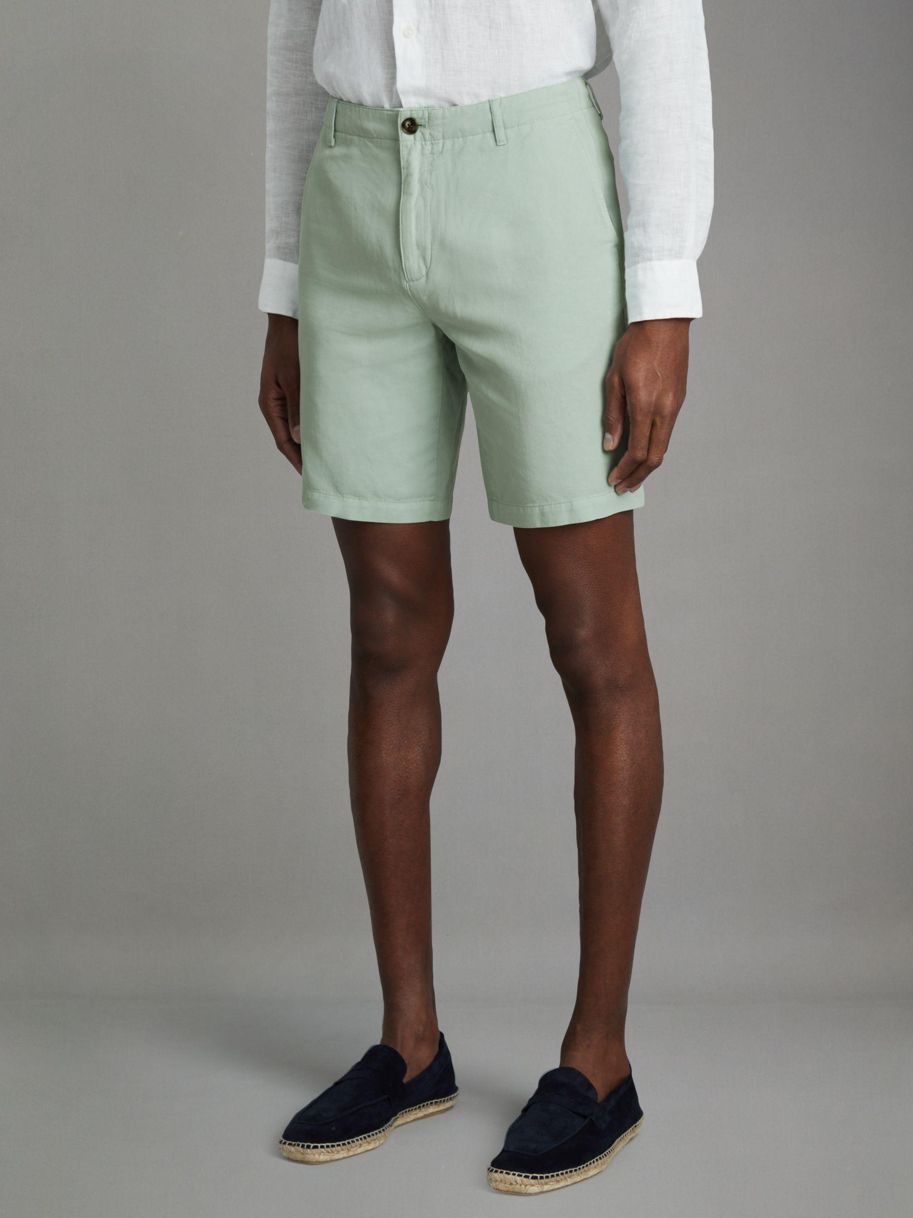 Cotton Linen Blend Internal Drawstring Shorts in Mint