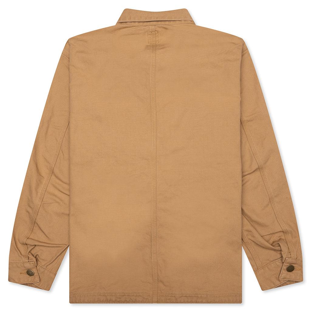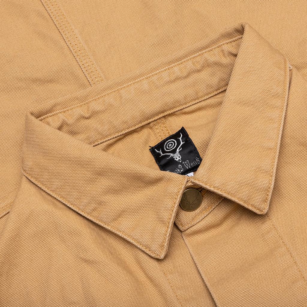 The South2 West8 11.5oz Cotton Canvas Coverall delivers rugged utility with a loose, workwear-inspired fit. Crafted entirely from heavyweight cotton canvas, this one-piece silhouette features four functional pockets, a classic collar, and custom buttons throughout. A subtle logo patch at the chest pocket adds a touch of signature branding to the practical design. 100% Cotton 11.5oz cotton canvas fabric Four pockets Classic collar loose fit Custom buttons Logo patch on chest pocket Style No: QV574-A