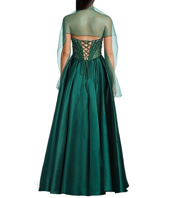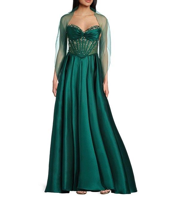 From Coya Collection, this gown features: Sweetheart neck Sleeveless Strapless corset Bodice sequin bustier Lace up corset & zipper closure A-line 48" length Polyester Spot clean Imported.
