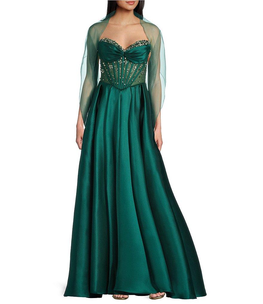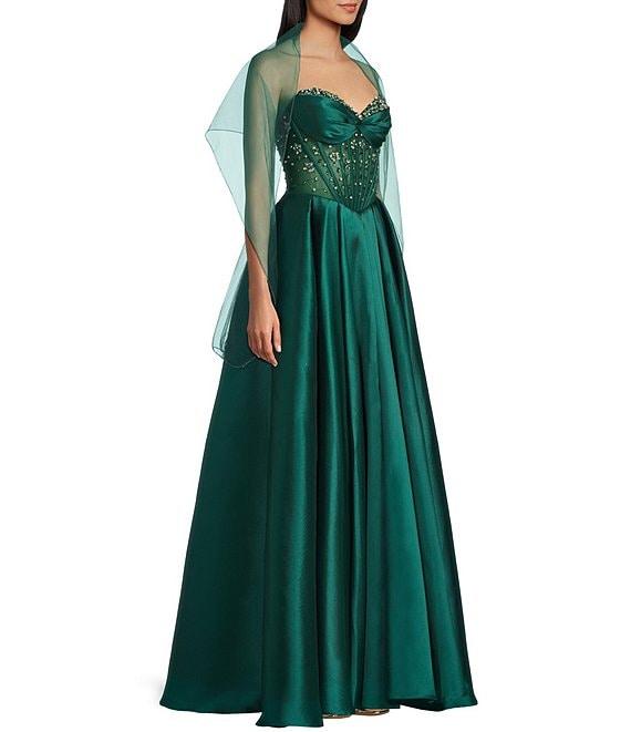 Coya Collection Sequin Sweetheart Neck Strapless Sheer Boned Bodice A-Line Gown