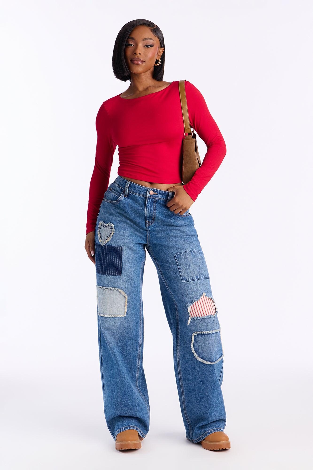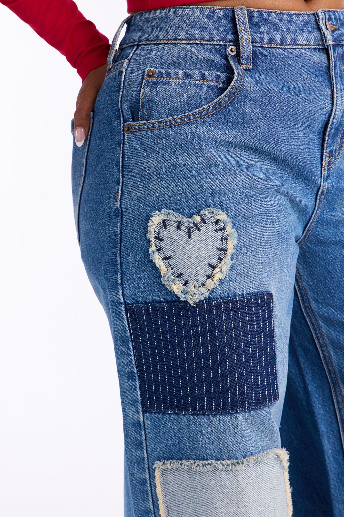 Craft Queen Wide Leg Patchwork Jeans - Dark Wash Female