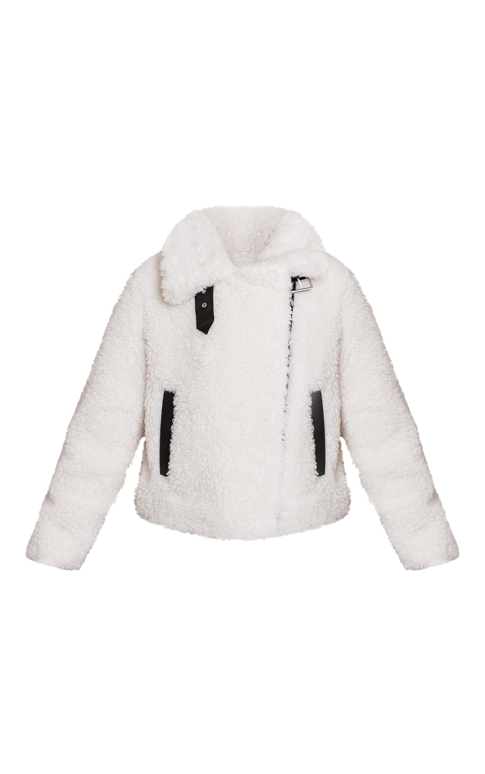 Stand out from the rest in this cream contrast detail borg aviator. Brought to you in a cream hue borg material with a contrast detailing. Complete the look with durable chunky boots and subtle gold hoops for a self-assured finish that speaks volumes.Length approx 48.5cm/19inch (Based on sample size S)Model wears size SModel Height - 5ft 7inchp]:!mb-4inch>Category: OuterwearProduct type: AviatorColor: CreamMaterial: BorgSleeves: LongOccasion: Day