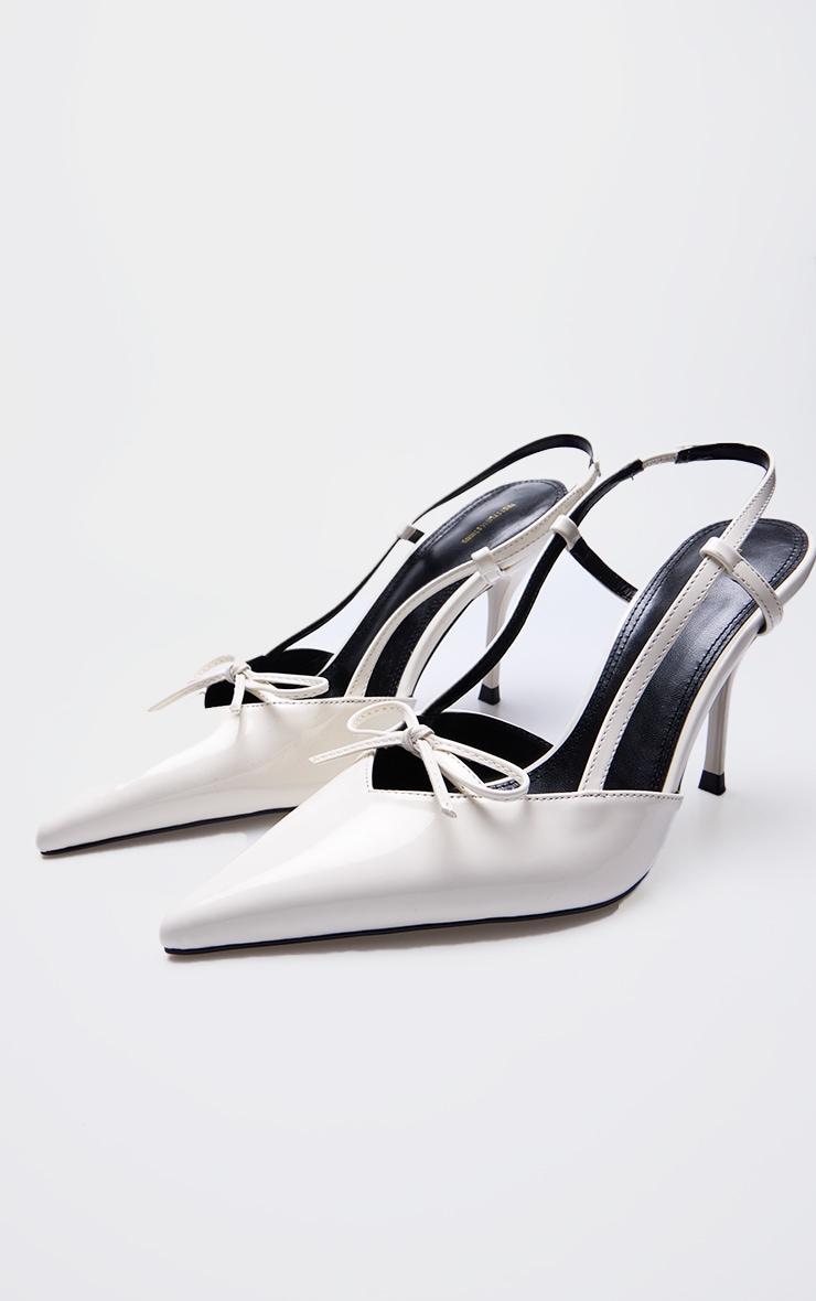 Stay in style this season with these cream PU patent point toe bow detail mid heel courts. Brought to you in a cream PU patent material with a point toe design and bow detail, these mid heeled courts are a must have. How can you resist? Style with your fave chic fit for a look that won't miss. PU patent Sling back 3inch Heel p]:!mb-0inch>Category: FootwearProduct type: CourtsColor: CreamOccasion: Evening
