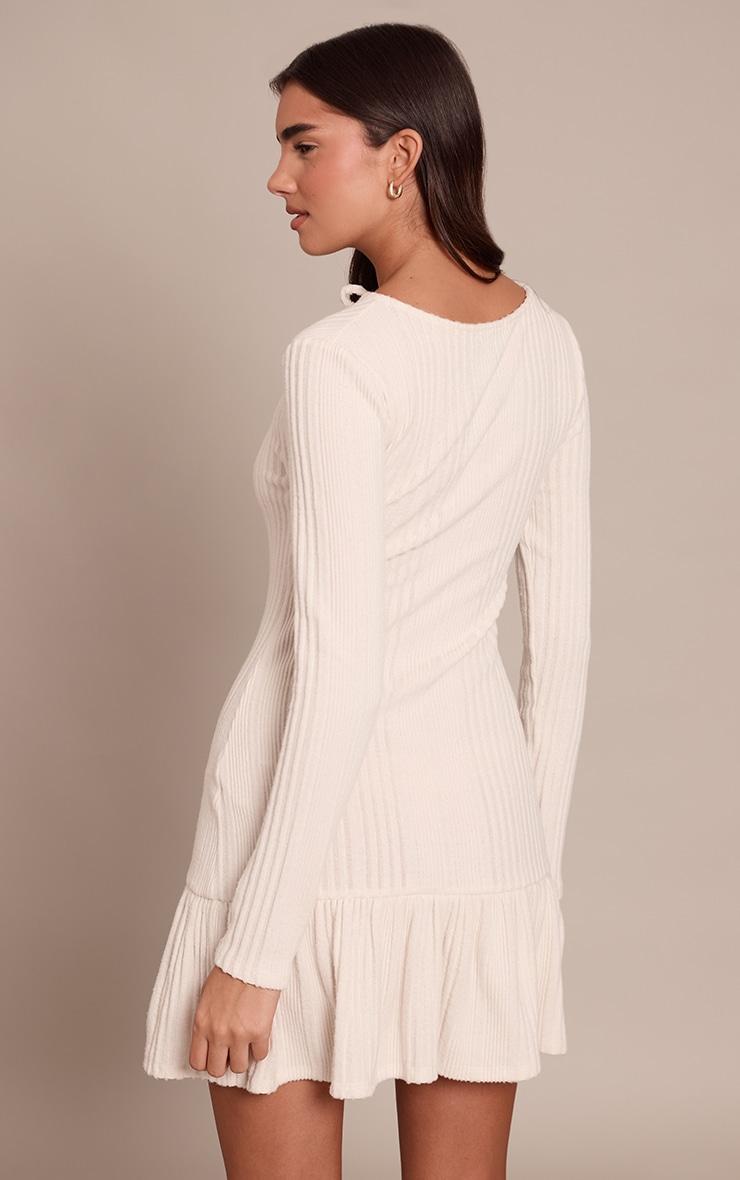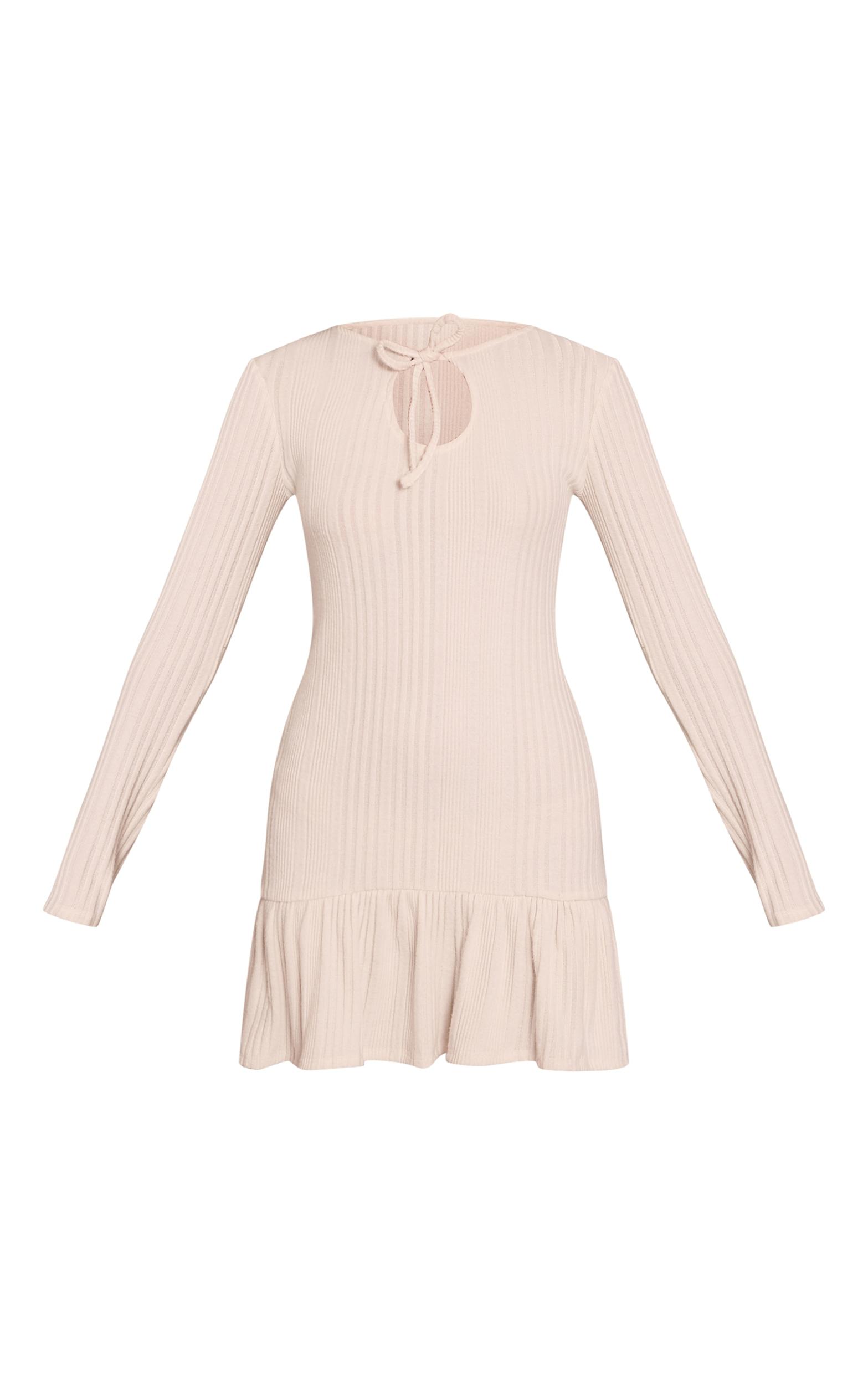 Define your everyday style with the cream ribbed keyhole detail long sleeve shift dress. Featuring a contemporary ribbed texture and a relaxed shift fit, it boasts long sleeves and a playful ruffled hem. Perfect for effortlessly chic brunches or sophisticated daytime ventures. Complete the look with some bold chunky boots and statement gold jewelry for confident cool.Length approx 81.5cm/32inch (Based on sample size US 4)Model wears size UK 8/ EU 36/ AUS 8/ US 4Model Height - 5ft 7inchp]:!mb-4inch>Brand: PrettyLittleThingCategory: DressesProduct type: Shift DressColor: CreamMaterial: Brushed RibSleeves: LongOccasion: Day