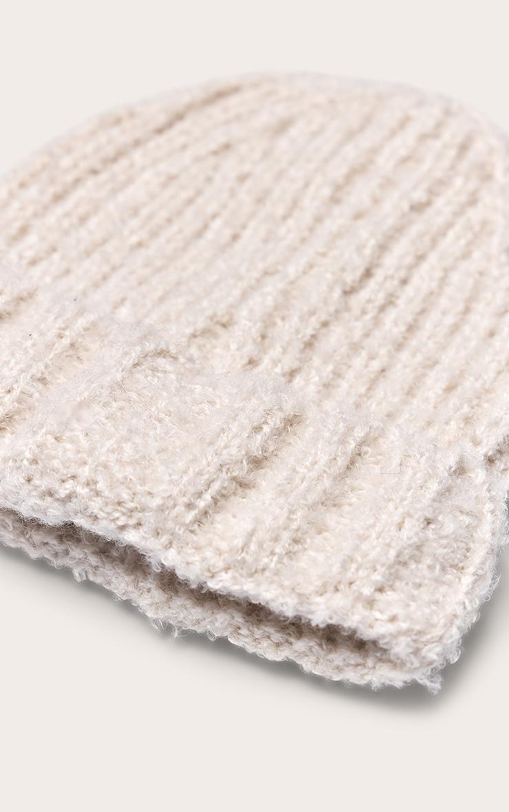Inject essential style into your everyday with the cream two tone bobble knit beanie, offering a confident yet refined edge. Its distinct ribbed structure and subtle bobble knit create a textural appeal, adding a chic dimension to any ensemble. Perfect for defining your cold-weather edit, pair this piece with an oversized sweater and wide-leg pants, grounding the look with a sleek pair of cowboy boots. Complete your confident daywear statement with delicate gold stud earrings for an understated polish, making it the ultimate accessory for navigating the seasons with effortless style.p]:!mb-4inch>Category: AccessoriesProduct type: BeanieColor: CreamMaterial: Cable KnitOccasion: Day