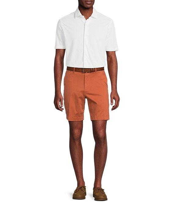 From Cremieux, these shorts feature: Garment-dyed Sateen fabric Mid-rise Classic fit Flat front Belt loops Zip fly with button closure 2 front slant pockets 2 flat back pockets with button closure Embroidered logo on back Approx. 8" inseam Cotton/modal/spandex Machine wash/tumble dry Imported.