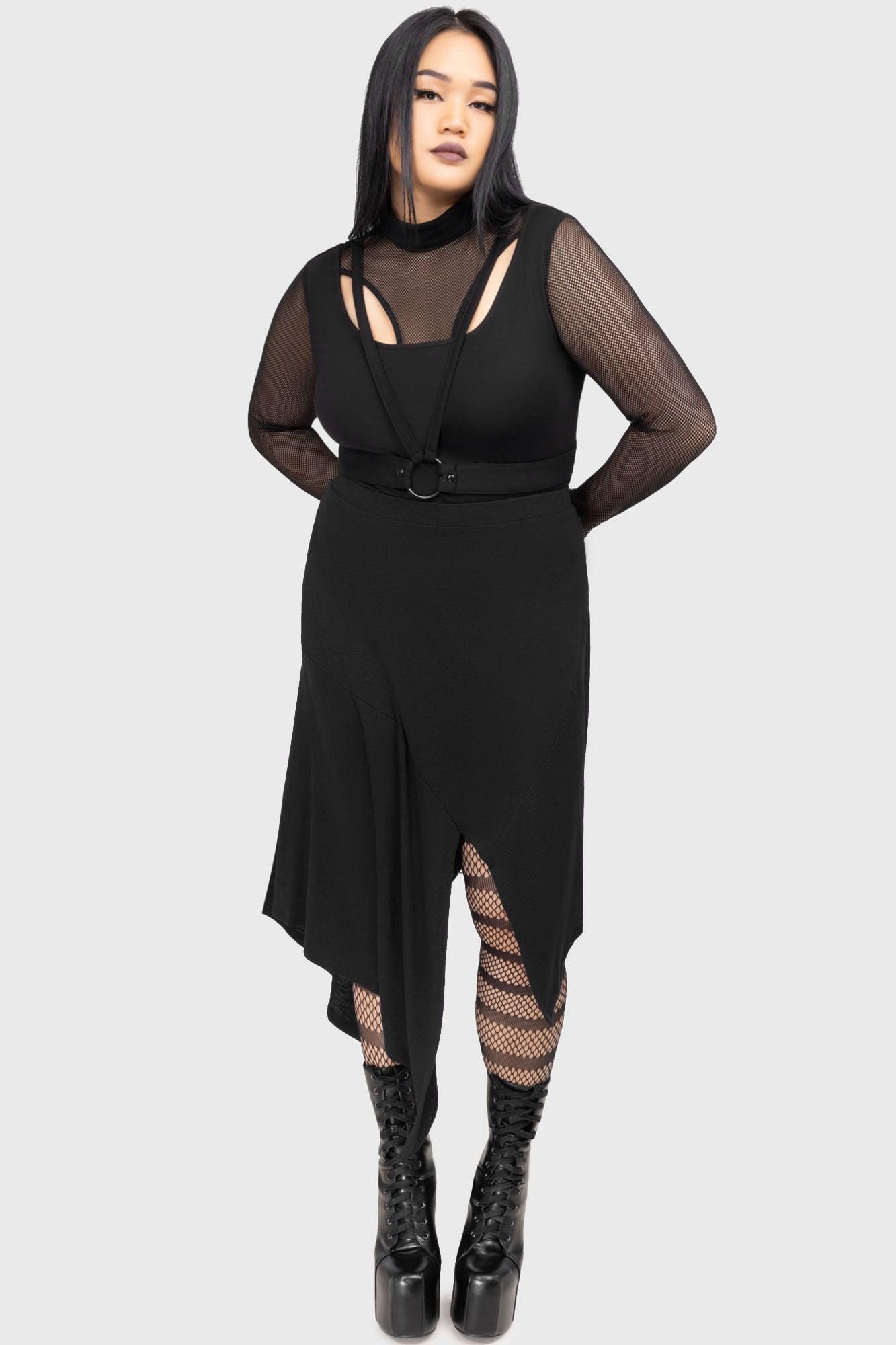 CRIMSOLITE- Super soft feel, stretch slub jersey fabric.- Midi length.- Seam shaping detail throughoiut.- Elasticated waistband.- Asymmetric, paneled hem.- Fitted.Model is 5’9 and wears a size XS.With KILLSTAR branding, 67% polyester 32% viscose 1% elastane.Machine wash cold (30°C)/ do not bleach/ do not tumble dry/ iron at low temperature/ do not dry clean. Imported.