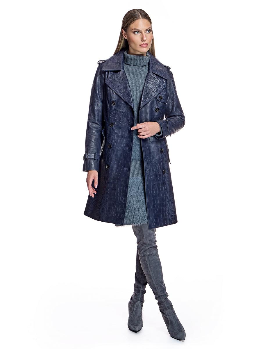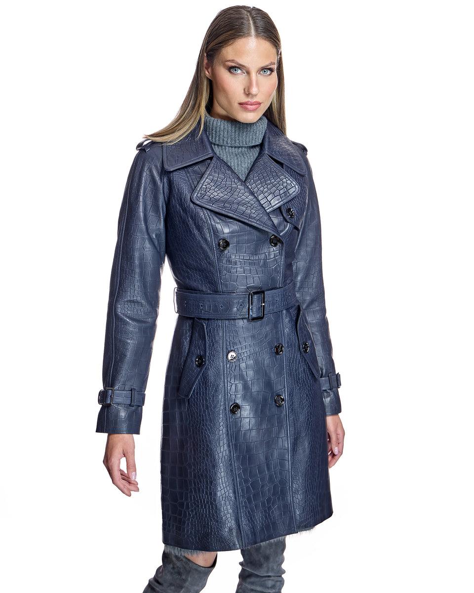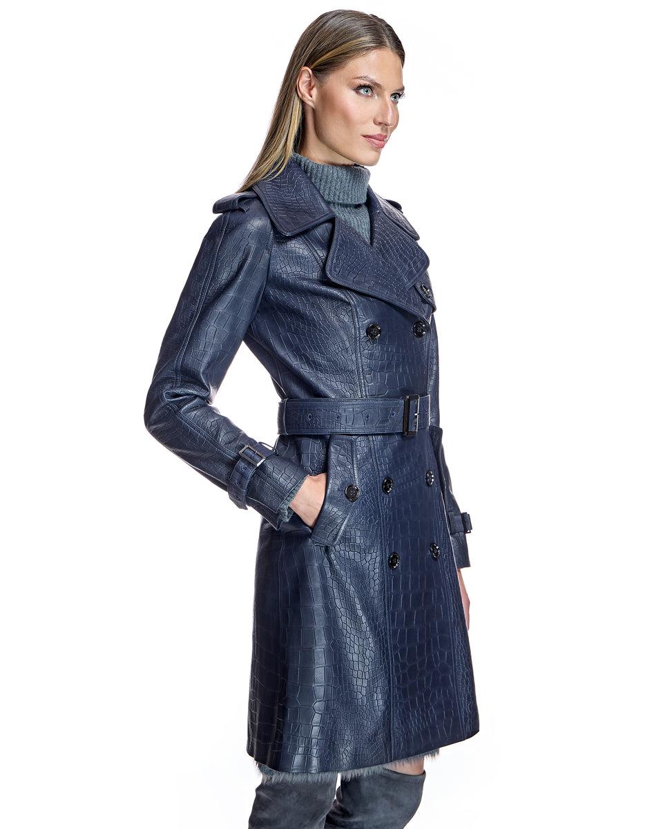 PRODUCT DETAILS: Dyed Leather Double Breasted Length: 37" Button Closures with a belt Slit Pockets Straight sleeve with buckled cuffs Origin: Turkey Professional Fur Clean Only Imported