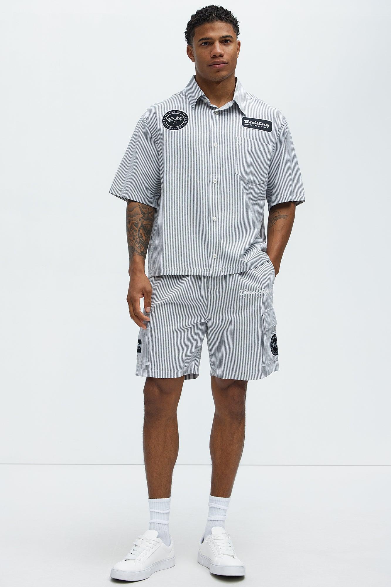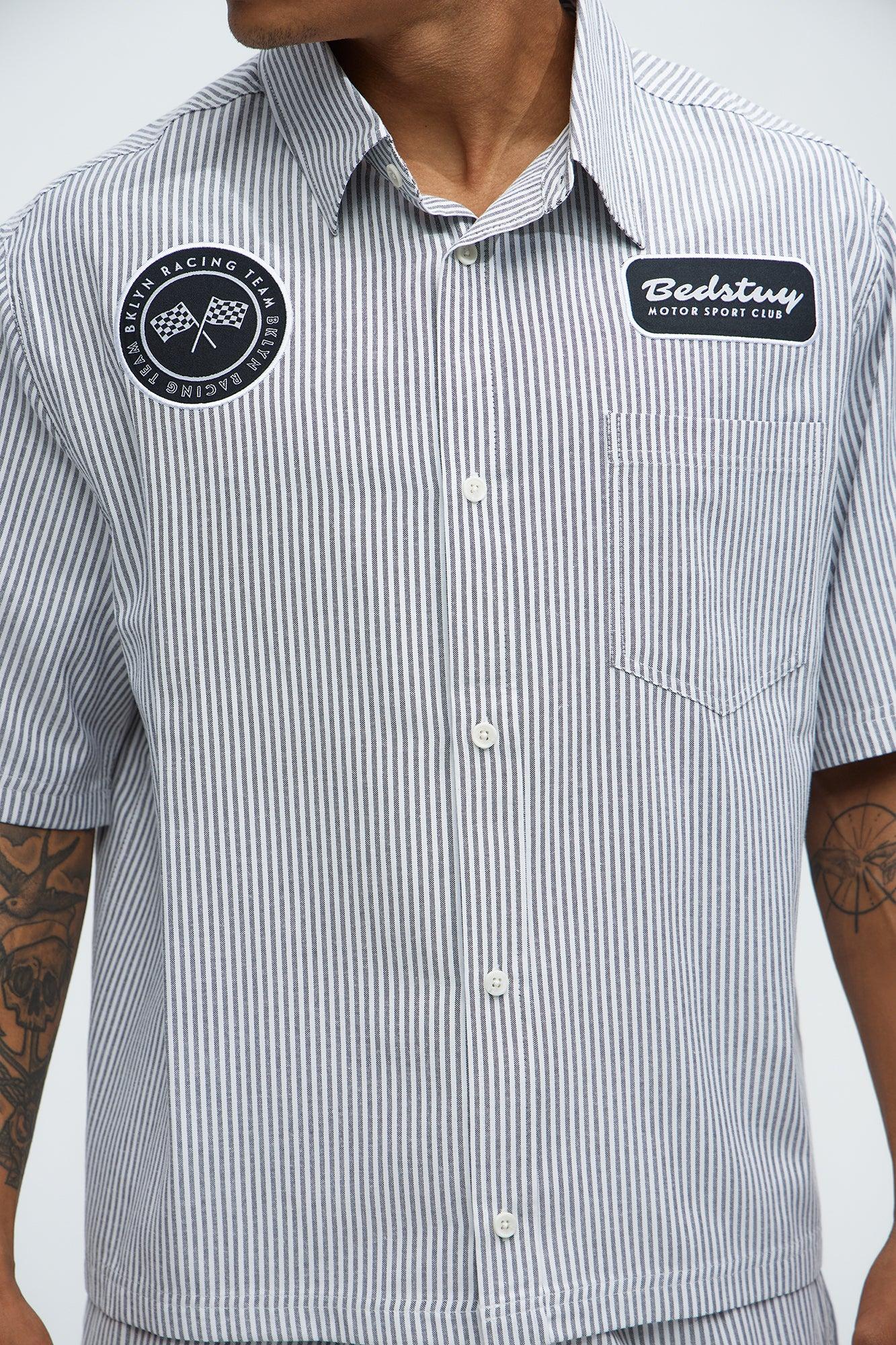 Cropped Bedstuy Patch Button Up Shirt - Black/White