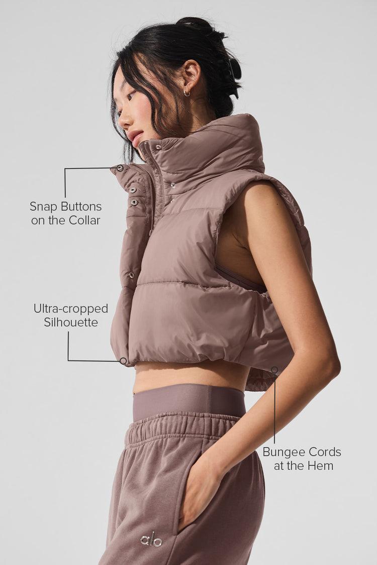 Cropped Gold Rush Puffer Vest - Mushroom
