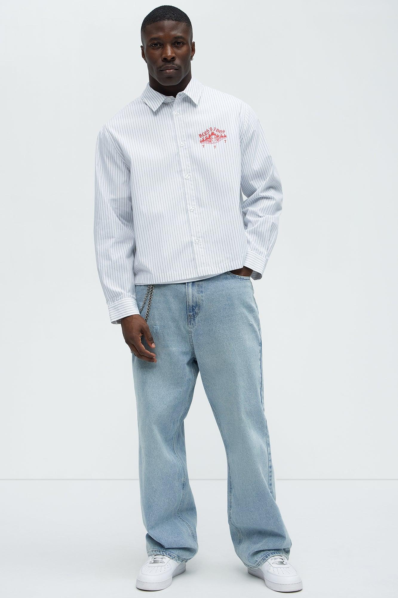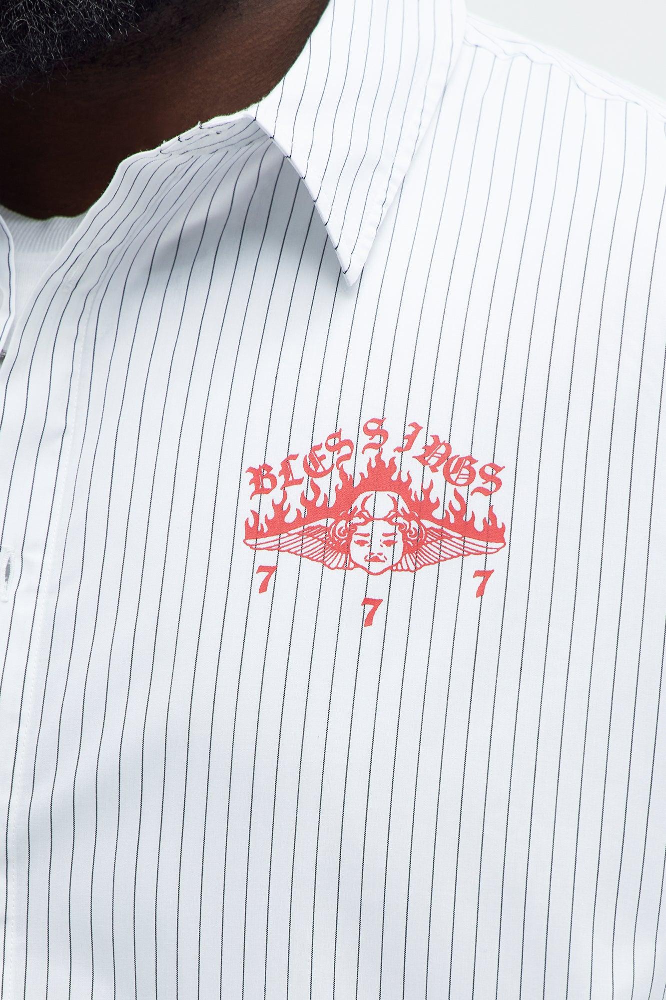 Available In White. Fold Down Collar Front Button Closure Long Sleeves Straight Hem Left Chest Graphic Buttoned Cuff Shell:65% Polyester 35% Cotton Disclaimer: Due To The Printing Process A Difference In Saturation May Occur. Each Garment Is Unique. Print Placement Will Vary. Imported