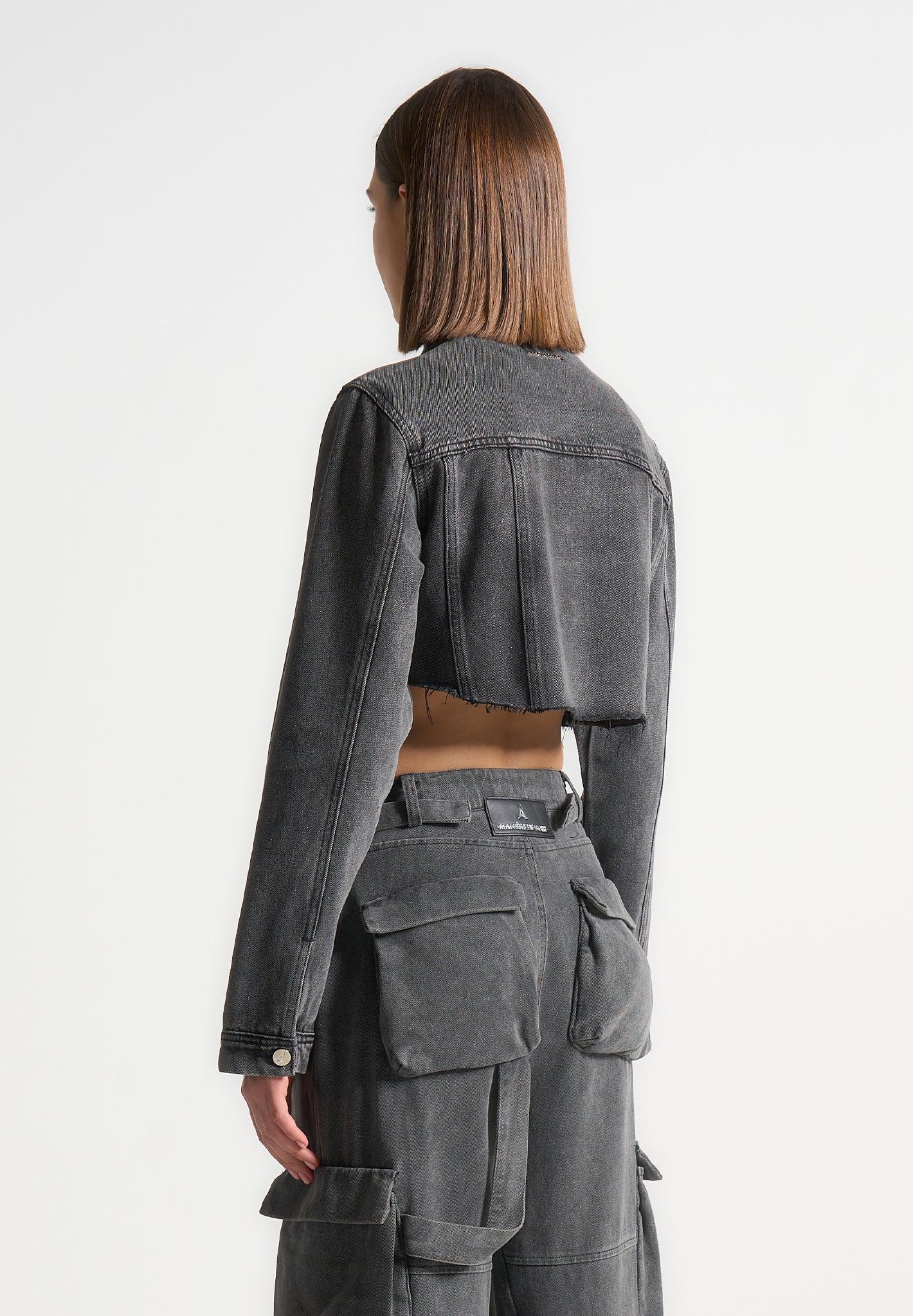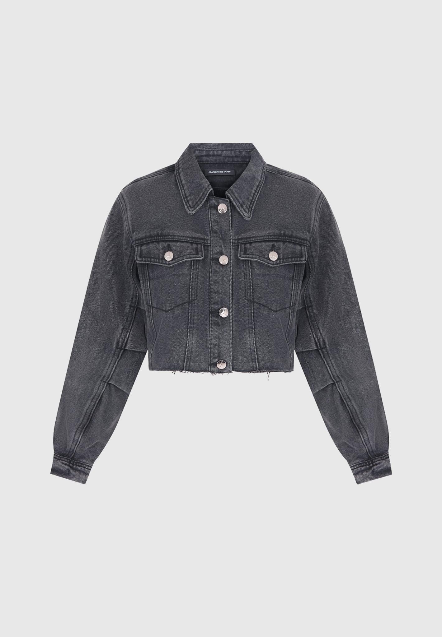 Crafted with a cropped fit and signature tacking, this Cropped Tacked Sleeve Jacket is sure to be a staple in your wardrobe. With its timeless silhouette, this jacket will stay fashionable for years to come. Cropped Jacket Silhouette Washed Grey Denim Fabric 13oz Denim Functional Front Pockets Tacking on Sleeves Silver MDV Eiffel Buttons Silver Manière De Voir Text Plaque 100% CottonAlways check the care label for wash instructions.