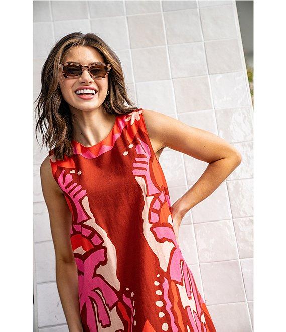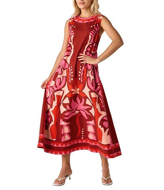 From CROSBY by Mollie Burch, this dress features: Crew neckline in front, scoop back Sleeveless Shift silhouette Ankle-length Self tie at center back Fully lined Cotton blend Approx. 53" in length (medium) Machine wash in cold water, lay flat to dry Imported.