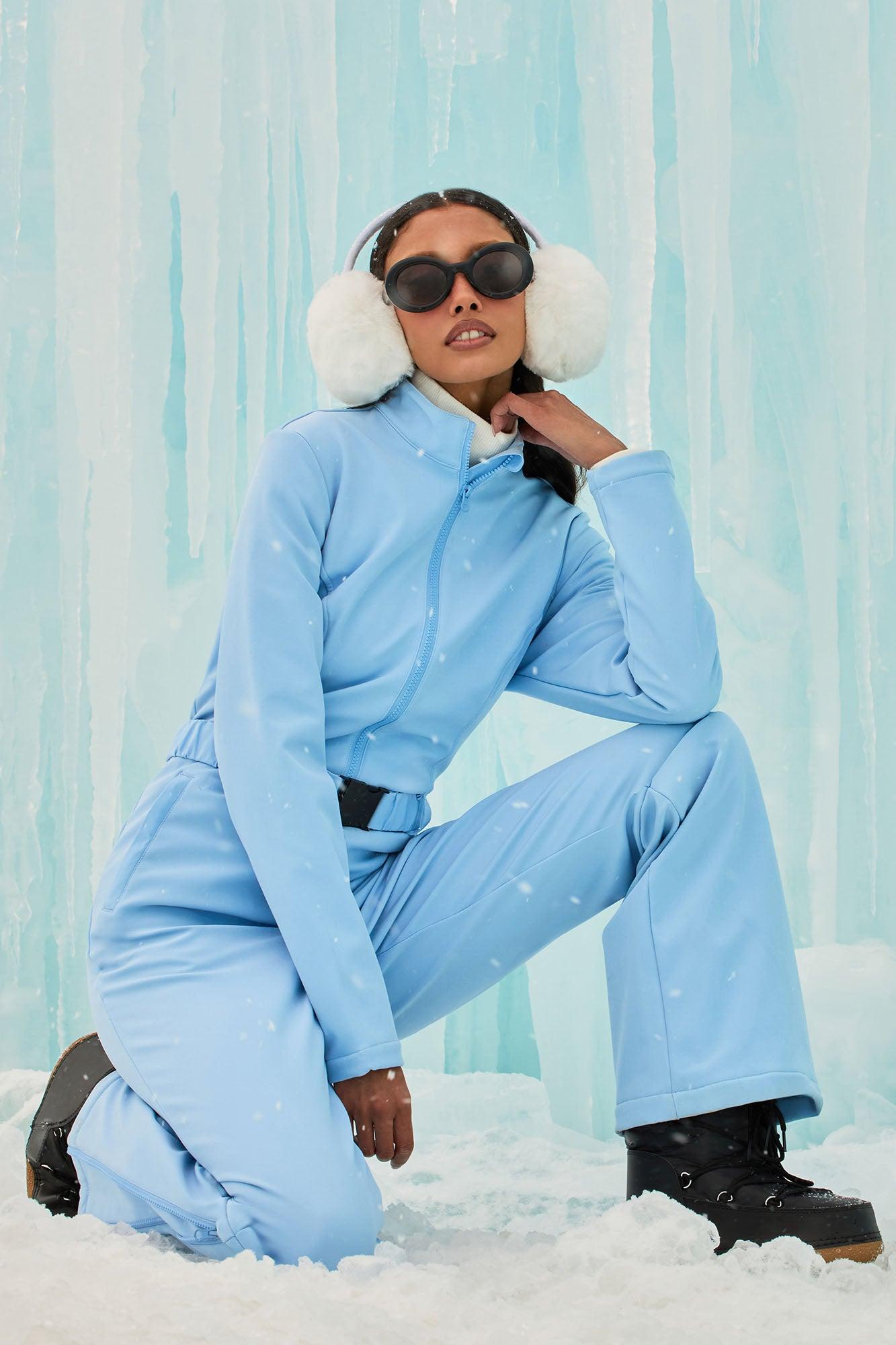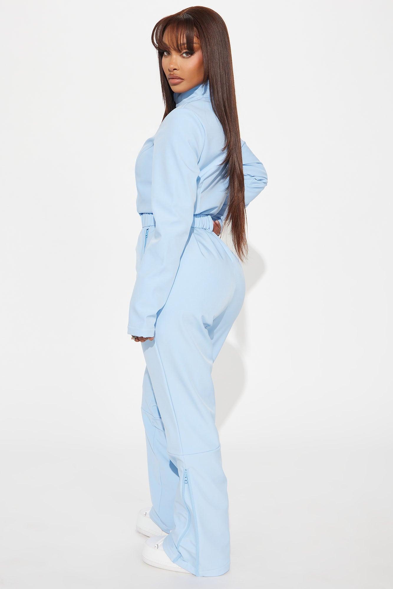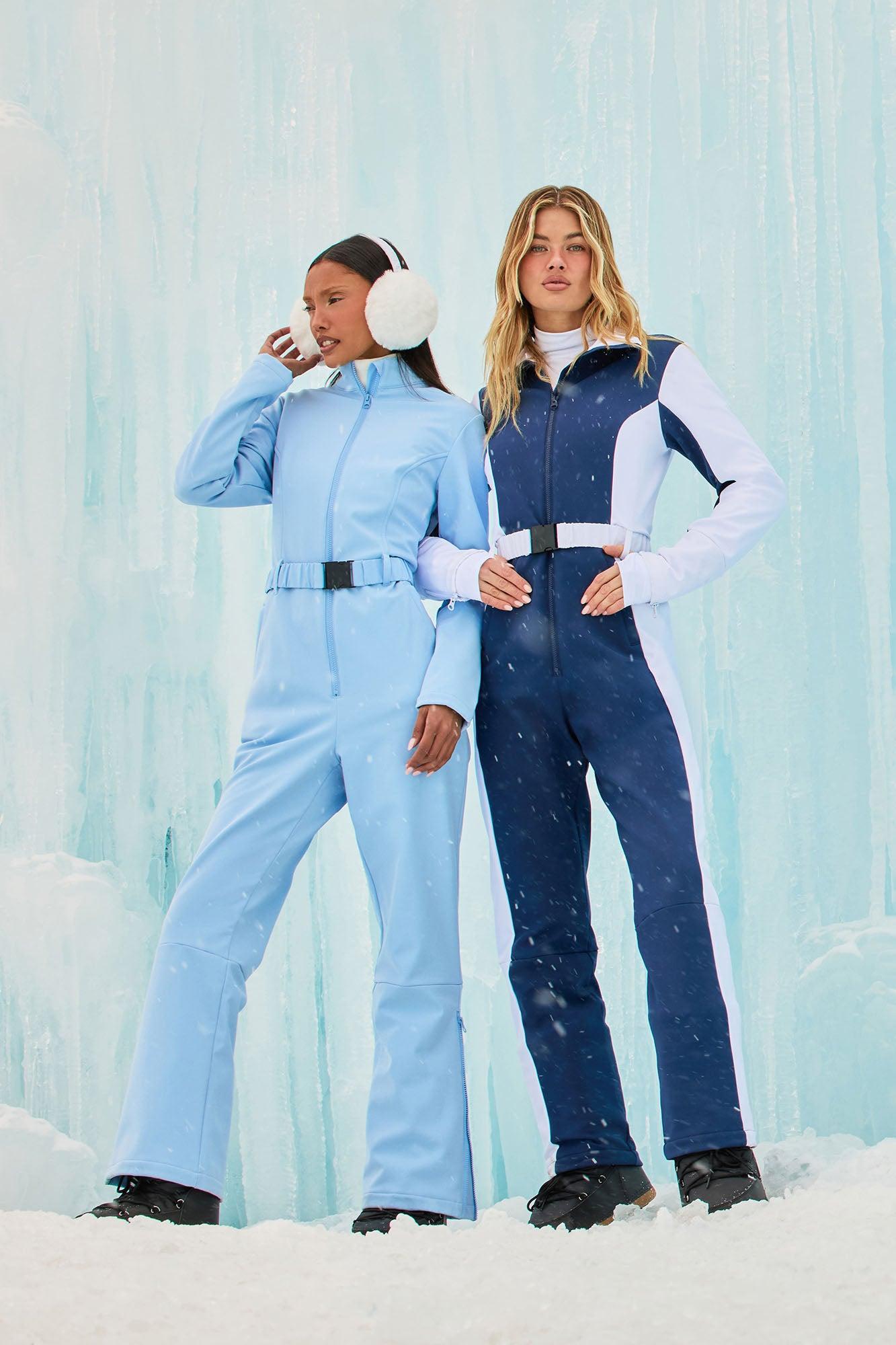 Available In Black, Fuchsia, Light Blue And White. Ski Jumpsuit Long Sleeve Zip Front Belted Hidden Pockets Wide Leg Fleece Lined Non Stretch Water-Resistant Face/Belt: 90% Polyester 10% Spandex Back/Lining/Pocket Lining: 100% Polyester Imported