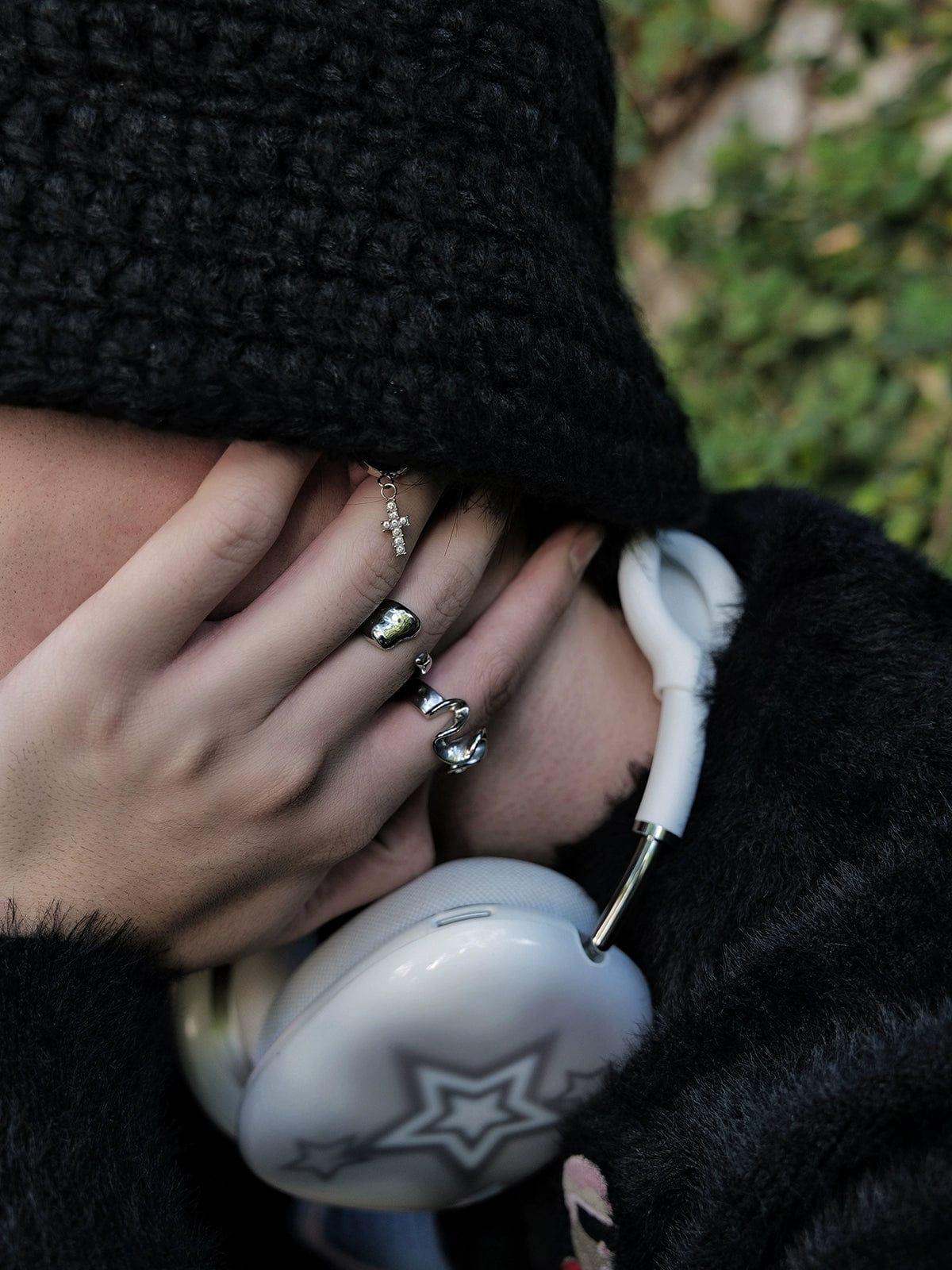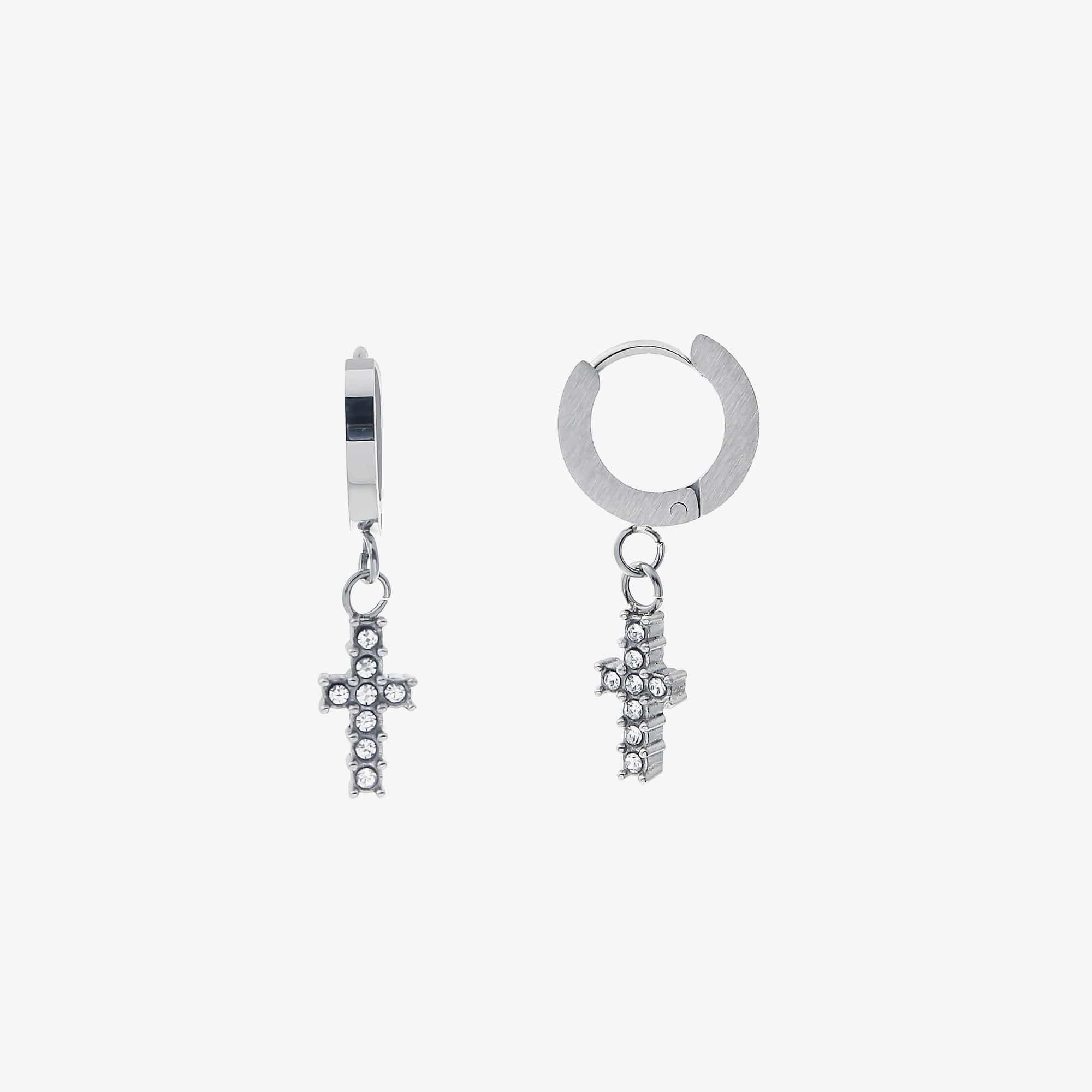 Mens The Cross Oxidized Sterling Silver Black Diamond Hoop Earring, Single