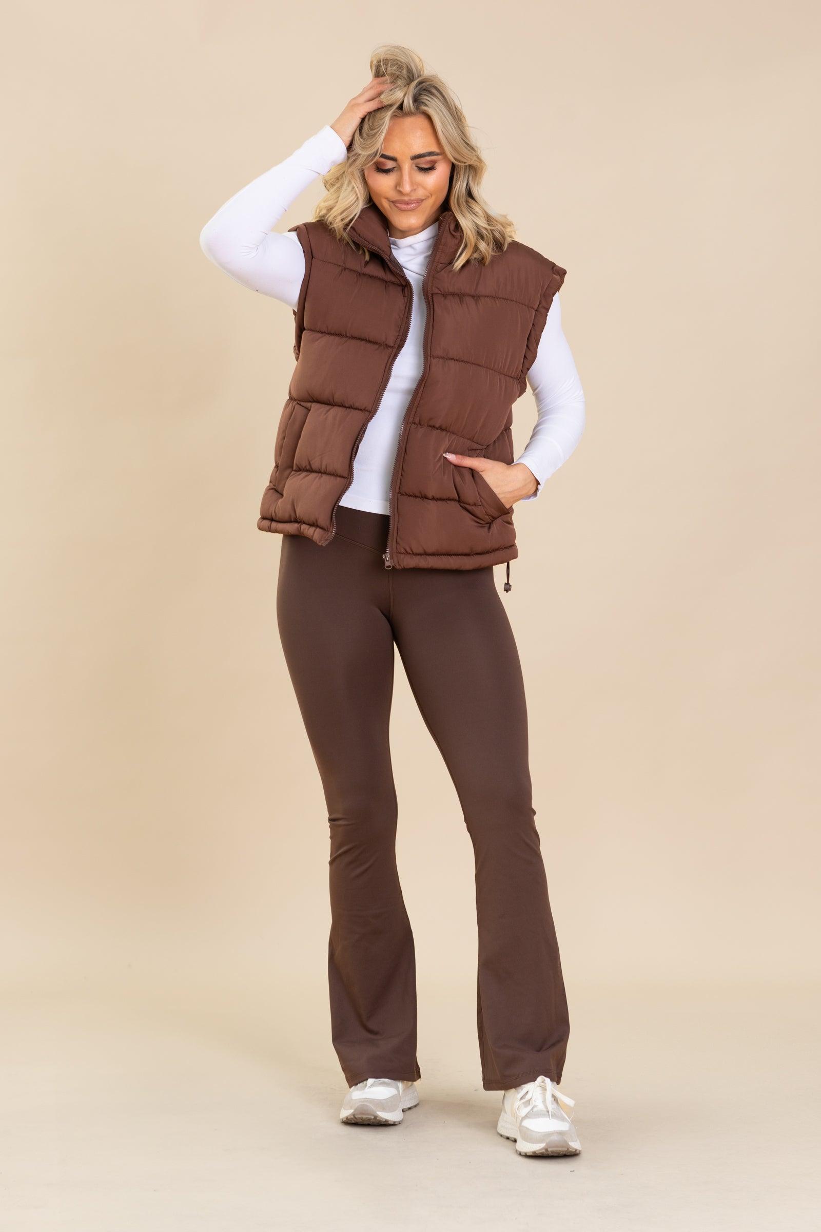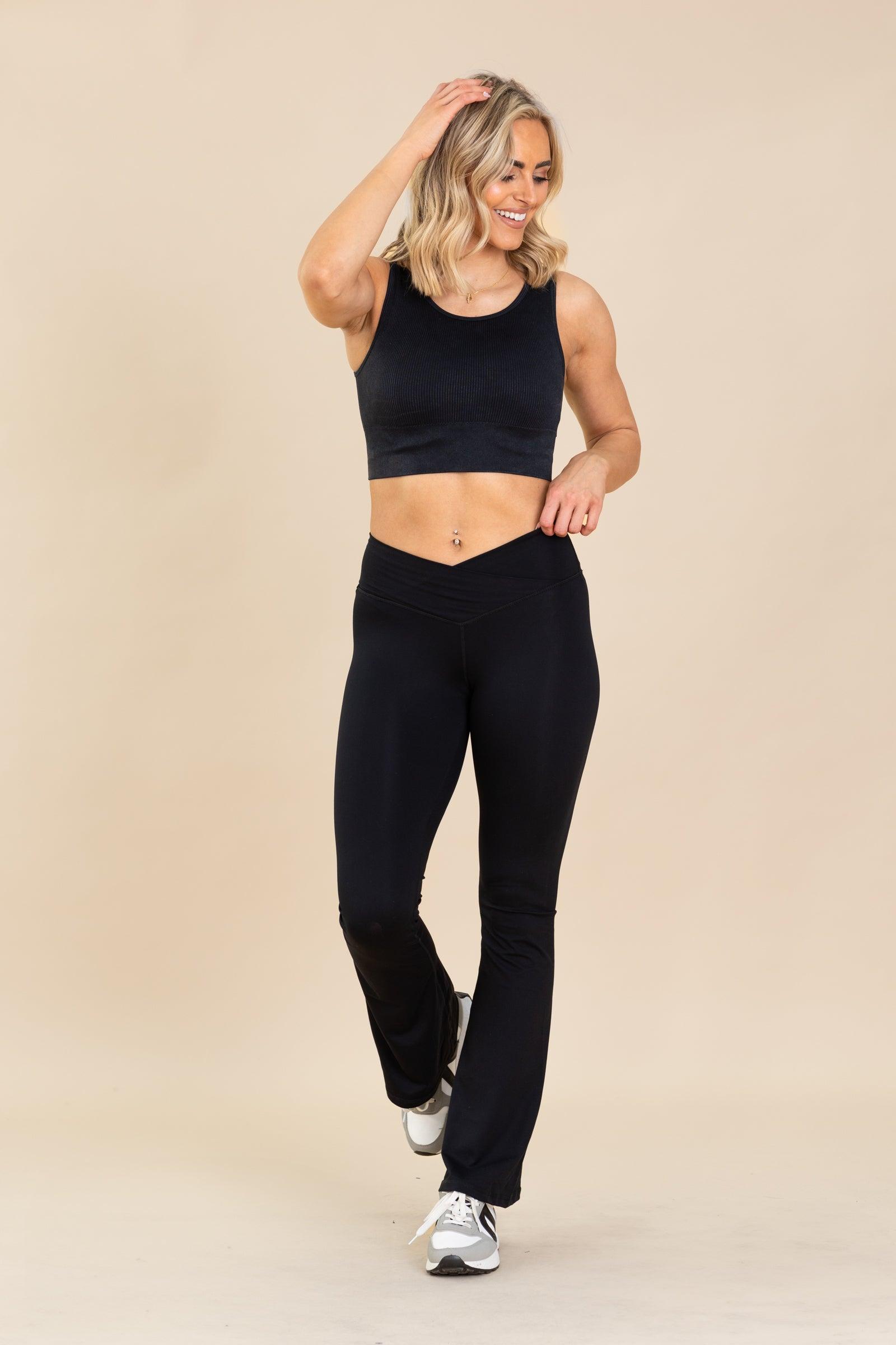 Product Details Colors: Black/ Navy/ Mocha Print: Solid Style: Yoga Pants Brand: Mono B Material and Care 76% Polyester 24% Spandex Machine Wash Cold Tumble Dry Low Size and Fit Small: Waist 20" Rise 8" Inseam 32" Medium: Waist 22" Rise 8.5" Inseam 32" Large: Waist 24" Rise 9" Inseam 32" Model is 5'8 and is wearing a size small Video model is 5’8 and wearing size small
