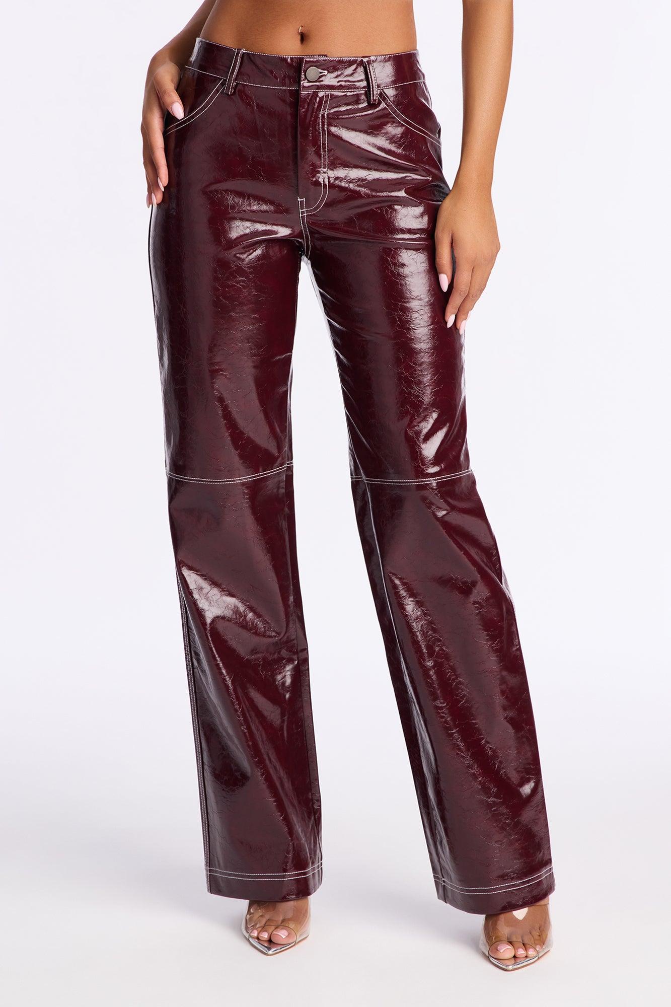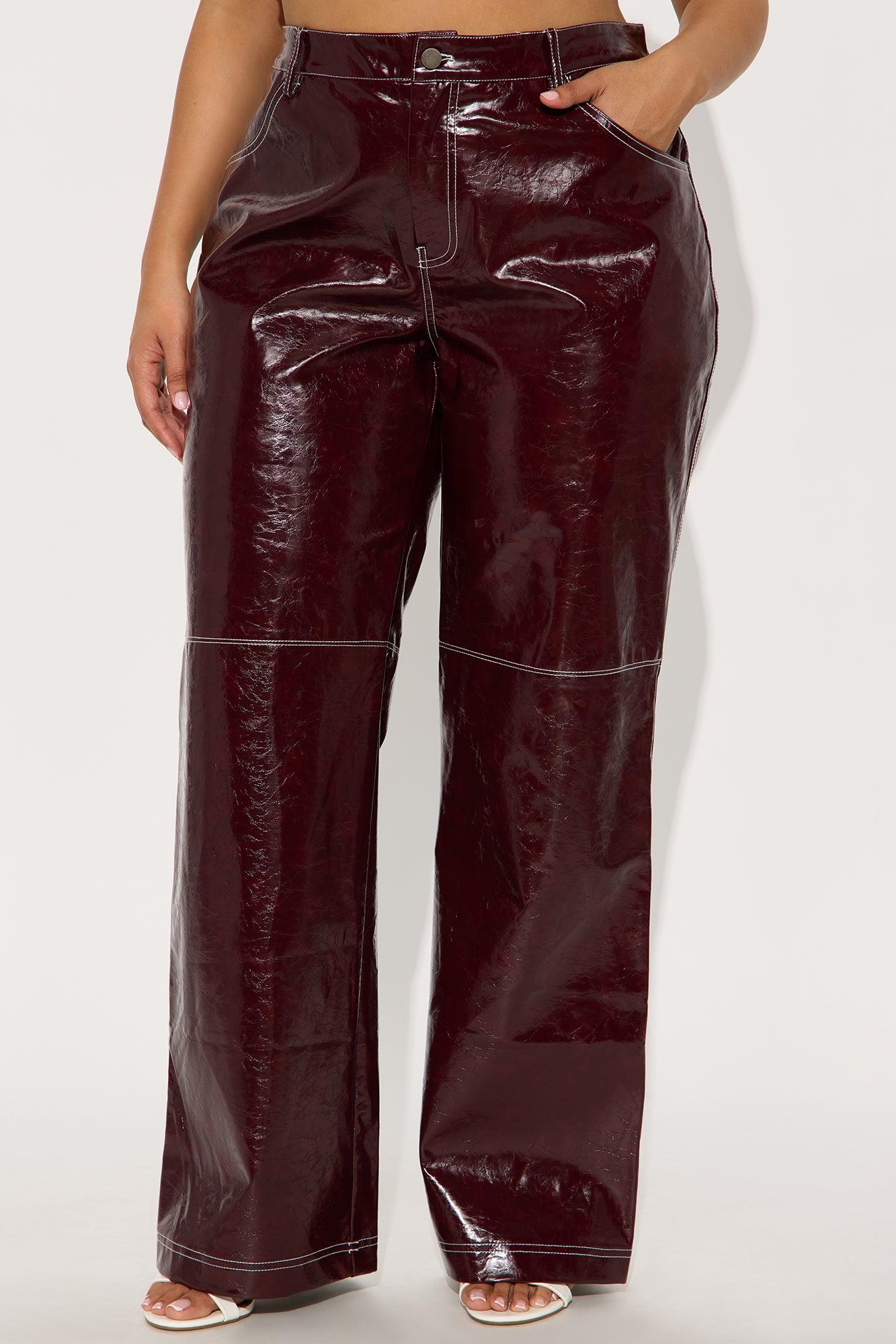 Crushing On You Low Rise Faux Leather Straight Leg Pant 33 - Burgundy Female