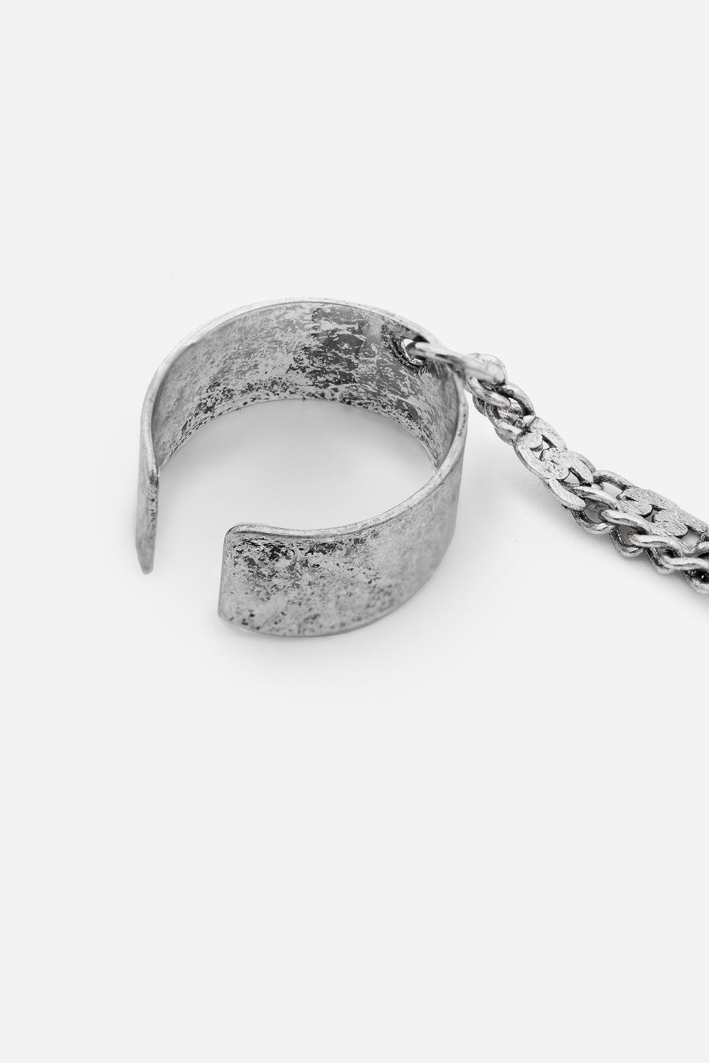 Let’s get to the crux of the matter, shall we? You need a no-nonsense new earring set that does all the stylin’ for you. This cuff earring set includes a silver cuff with an ornate inverted cross drop earring, linked by two dainty draping chains. Add a couple of black gemstone studs and you have the perfect set for lobes with multiple piercings. Wear them all on one side (if you have up to three piercings) or mix ‘n’ match with pieces from your own collection to curate a unique look. - COLOUR: Silver - COMPOSITION: Real silver plate - CHAIN LENGTH: 8cm - PENDANT: 5cm