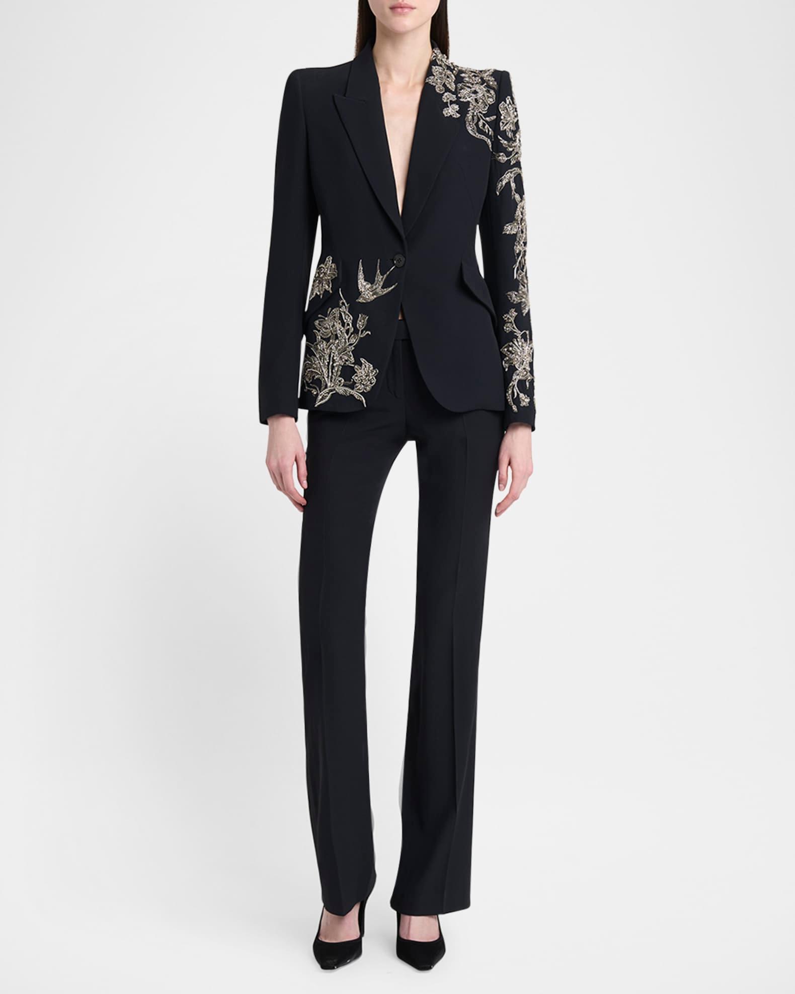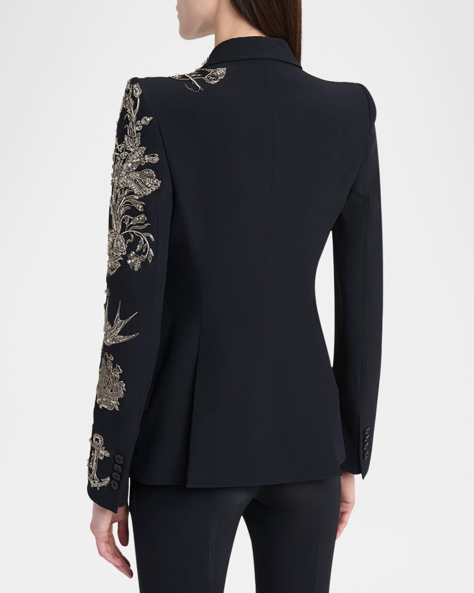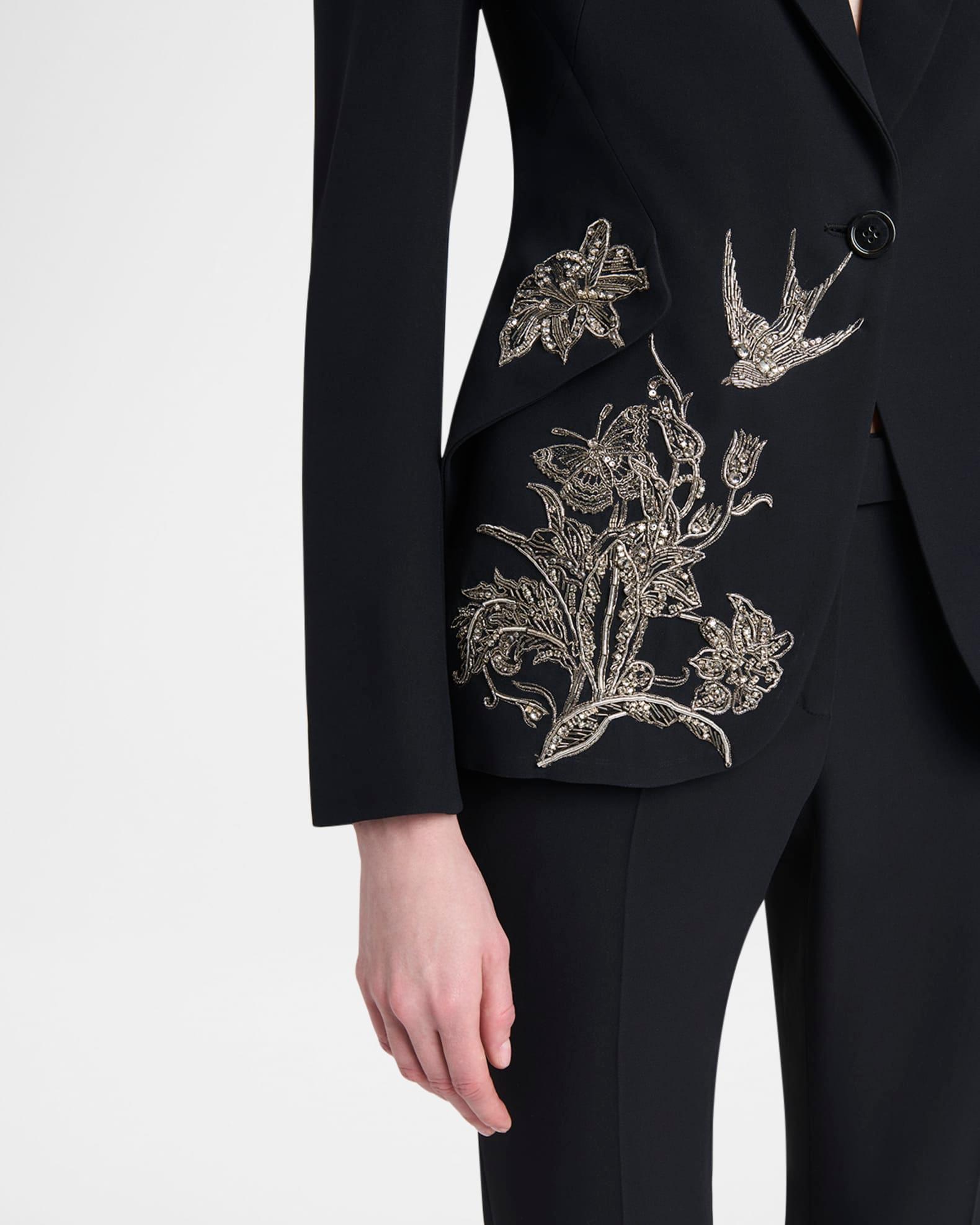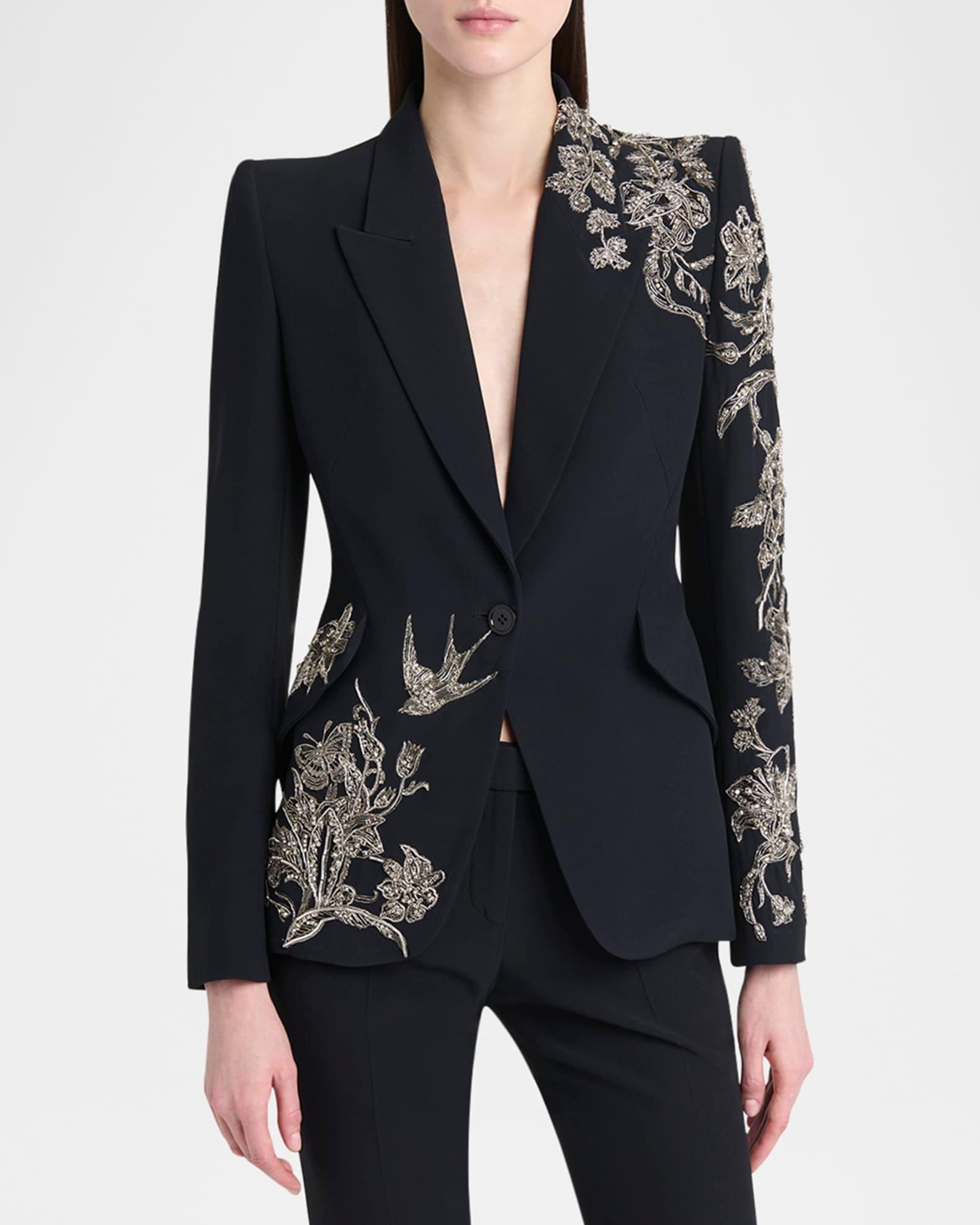 Crystal Embroidered Single-Breasted Blazer Jacket