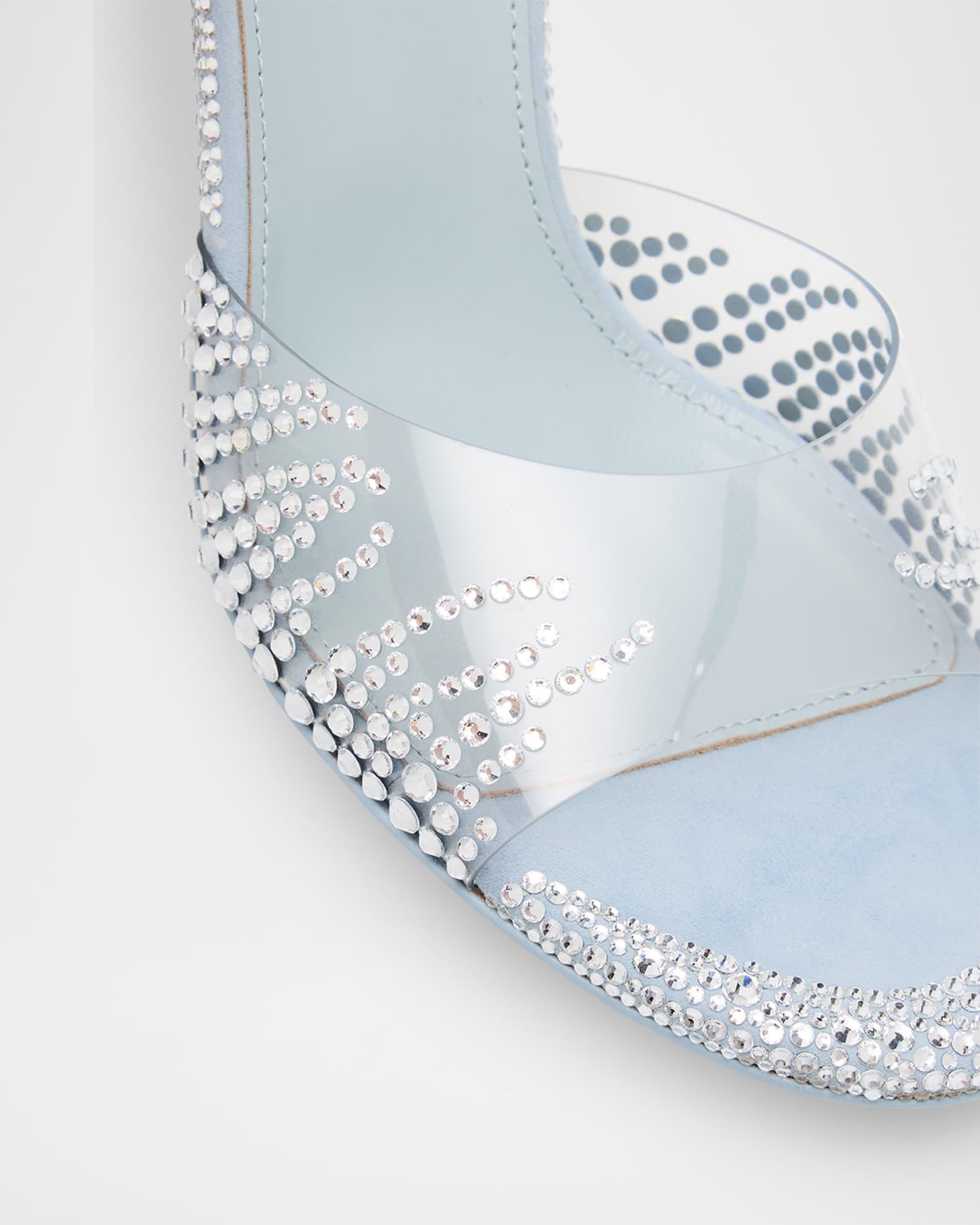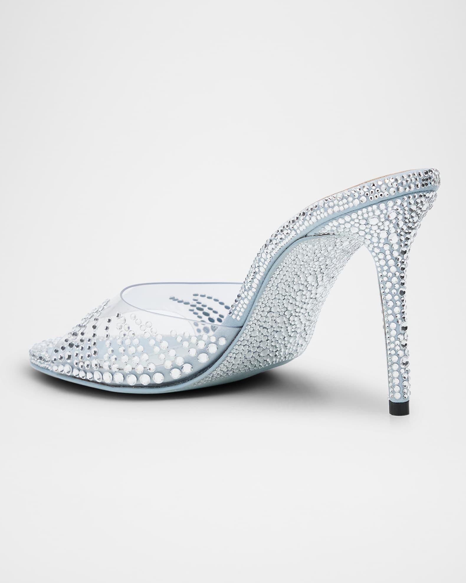 MACH & MACH mules feature a crystal-embellished clear PVC upper 3.75 in / 95 mm stiletto heel Round open toe Slip-on style Leather outsole Lining: Goat leather/leather Made in Italy