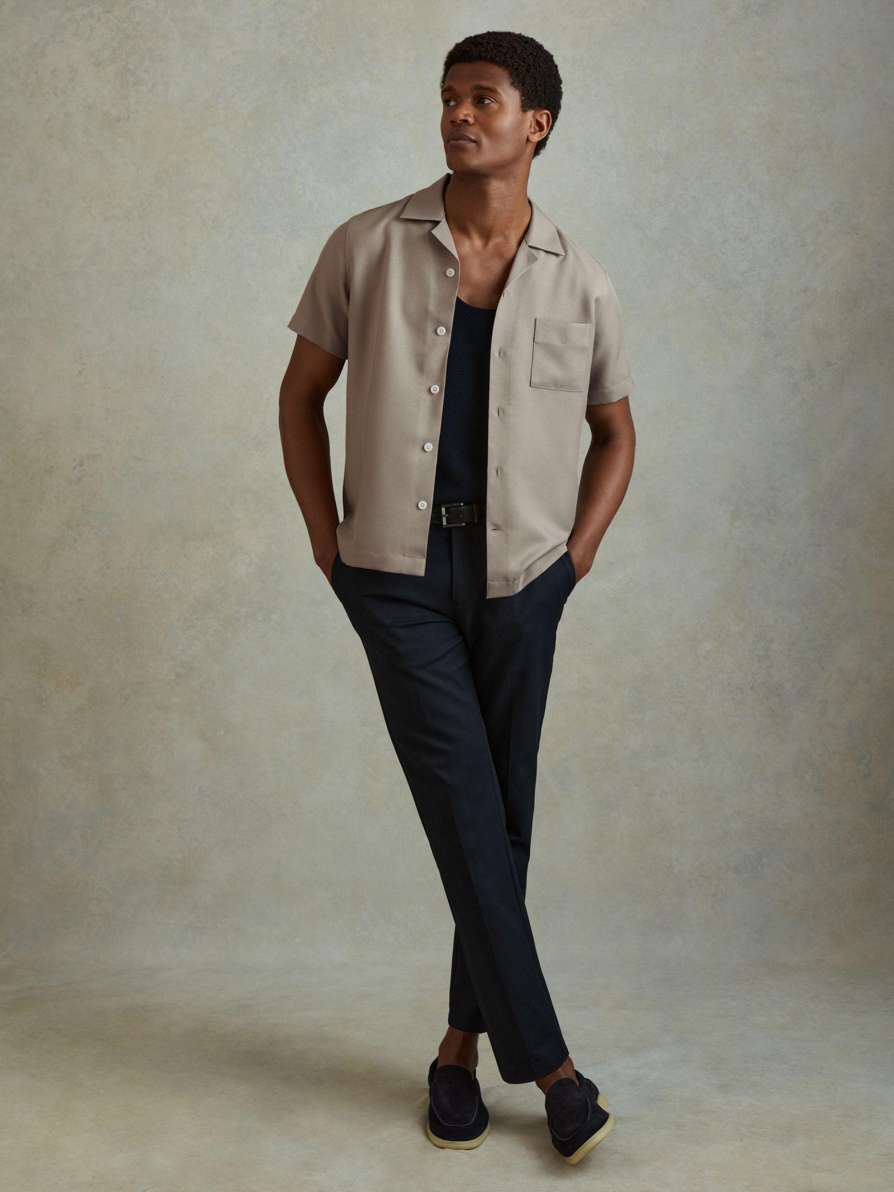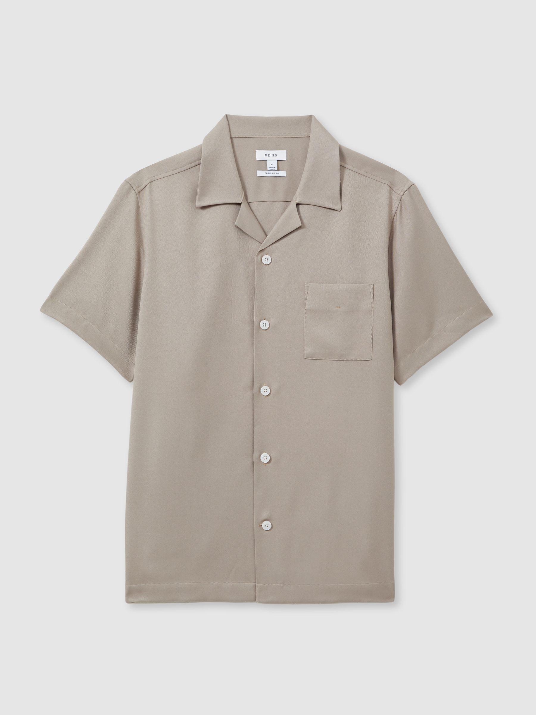 Cuban Collar Button-Through Shirt in Mushroom Brown