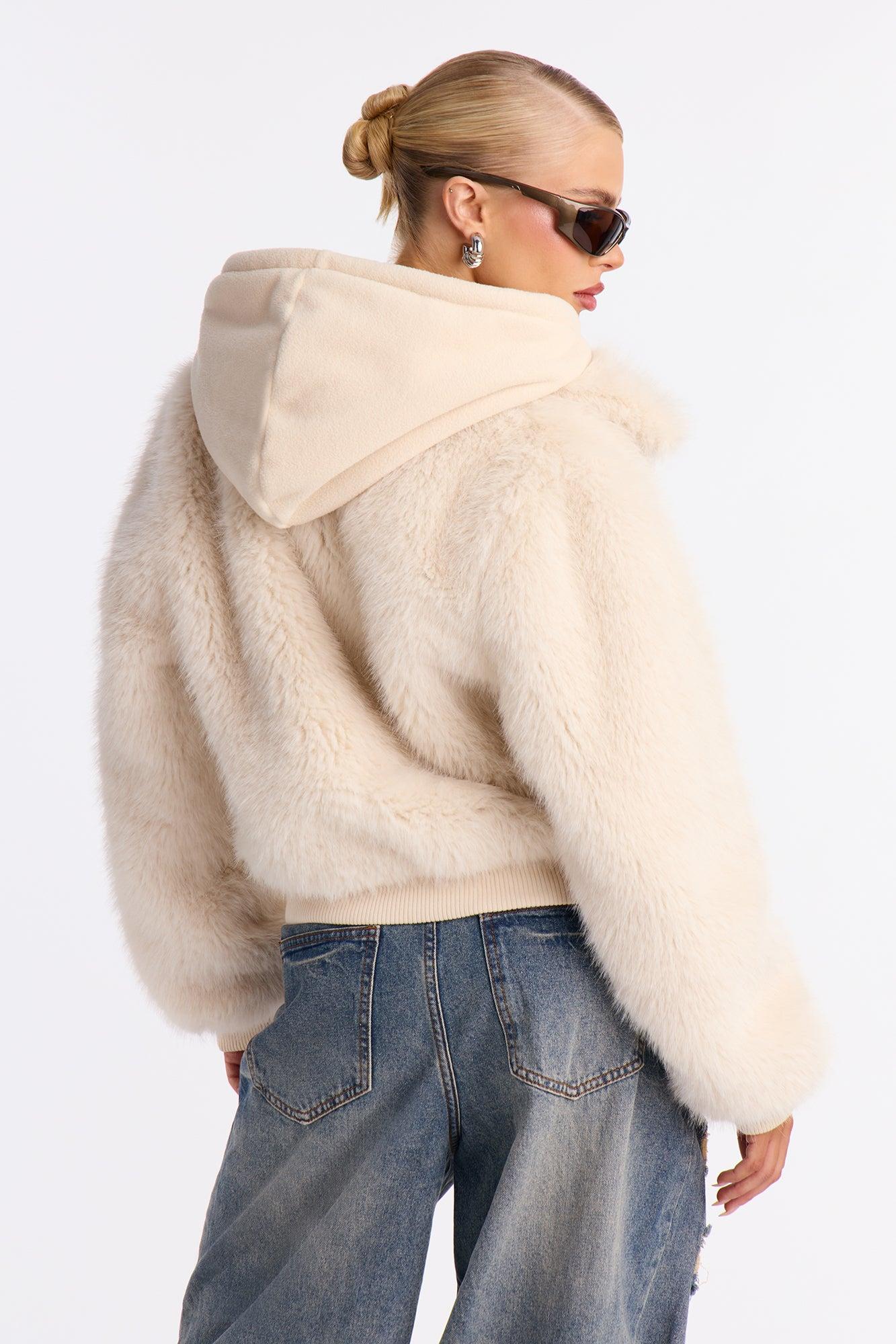 Available In Beige And Grey. Faux Fur Coat Hooded Long Sleeves Zipper Closure Drawstring Layered Shell1: 100% Polyester Shell2: 100% Polyester Shell3: 93% Polyester 7% Spandex Lining: 100% Polyester Contrast: 98% Polyester 2% Spandex Imported California Proposition 65WARNING: Cancer and Reproductive Harm - www.P65Warnings.ca.gov.