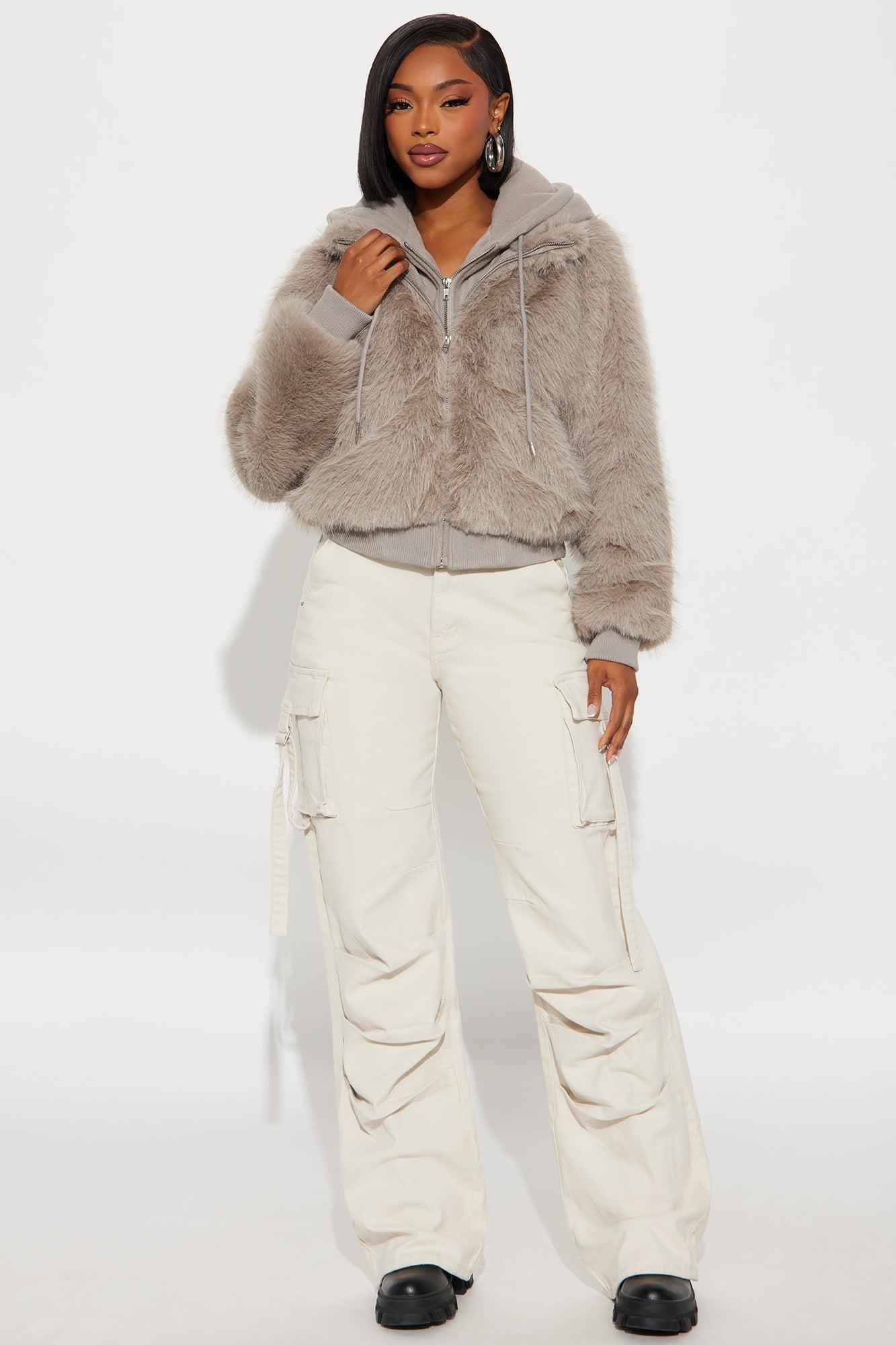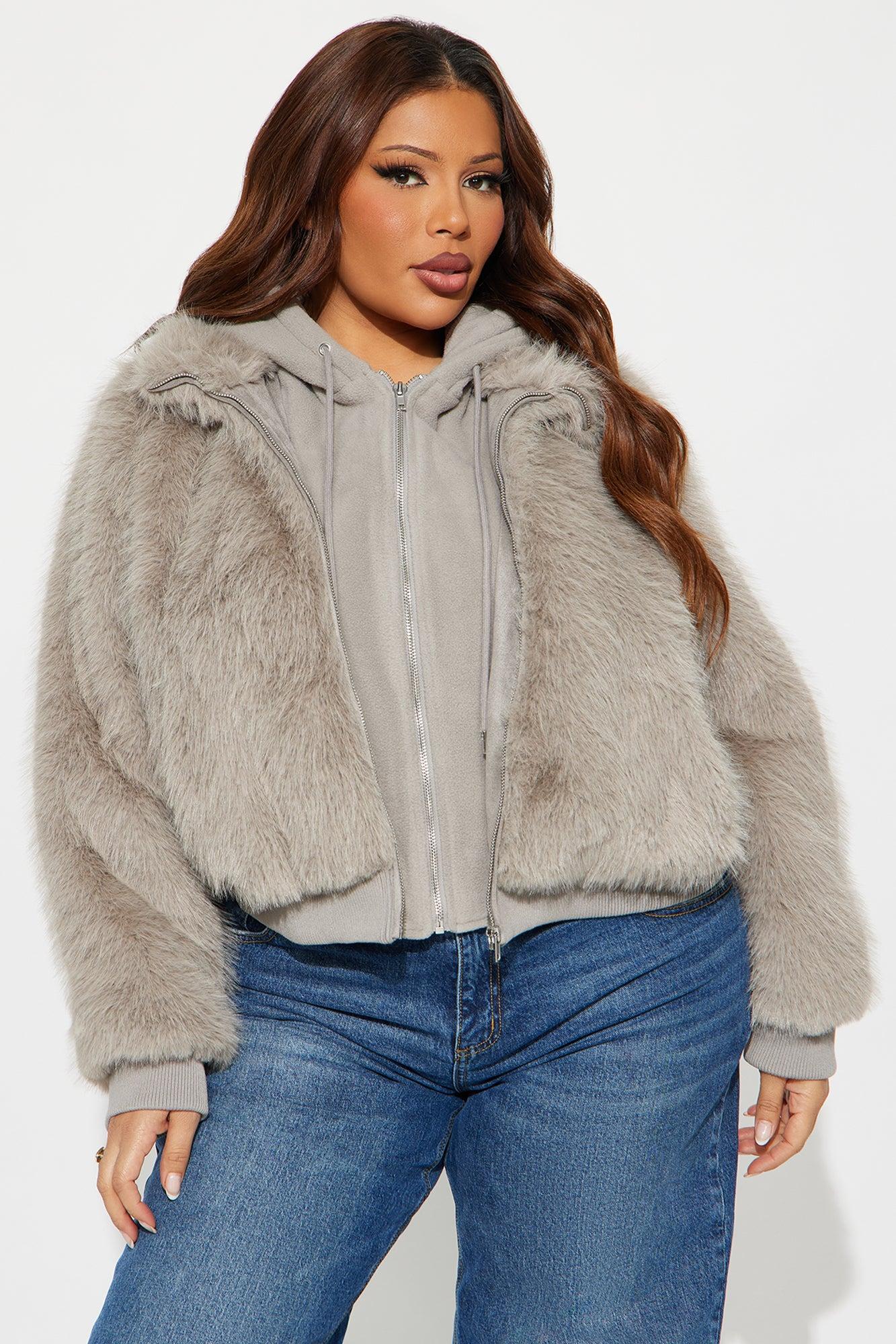 Available In Beige And Grey. Faux Fur Coat Hooded Long Sleeves Zipper Closure Drawstring Layered Shell1: 100% Polyester Shell2: 100% Polyester Shell3: 93% Polyester 7% Spandex Lining: 100% Polyester Contrast: 98% Polyester 2% Spandex Imported California Proposition 65WARNING: Cancer and Reproductive Harm - www.P65Warnings.ca.gov.