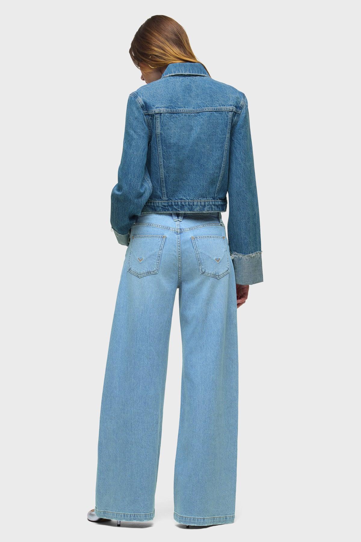 Description A new classic for your closet, the Cuffed Cropped Denim Jacket in Universal has a cropped fit with wide-cuffed sleeves. This denim jacket has a fitted, slightly cropped shape in a rigid, light-wash indigo denim that you'll wear season after season. Product Details Body Length: 20", Chest: 36", Sleeve Length: 25" Fit & Care Content: 100% Cotton Machine wash cold gentle cycle Only non-chlorine bleach when needed Tumble dry low Medium iron if needed
