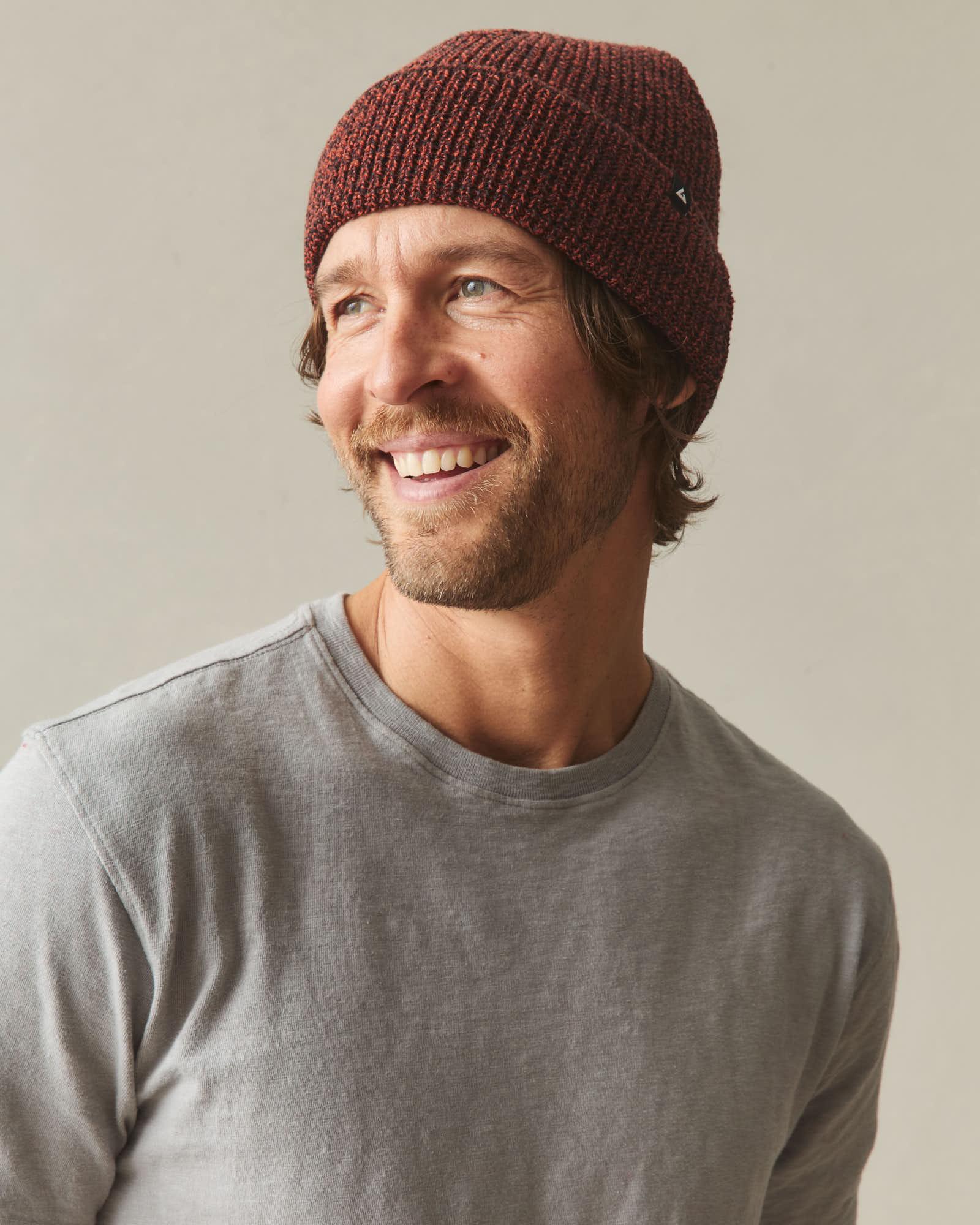Cuffed Marled Merino Wool Beanie - Marled Rust Black