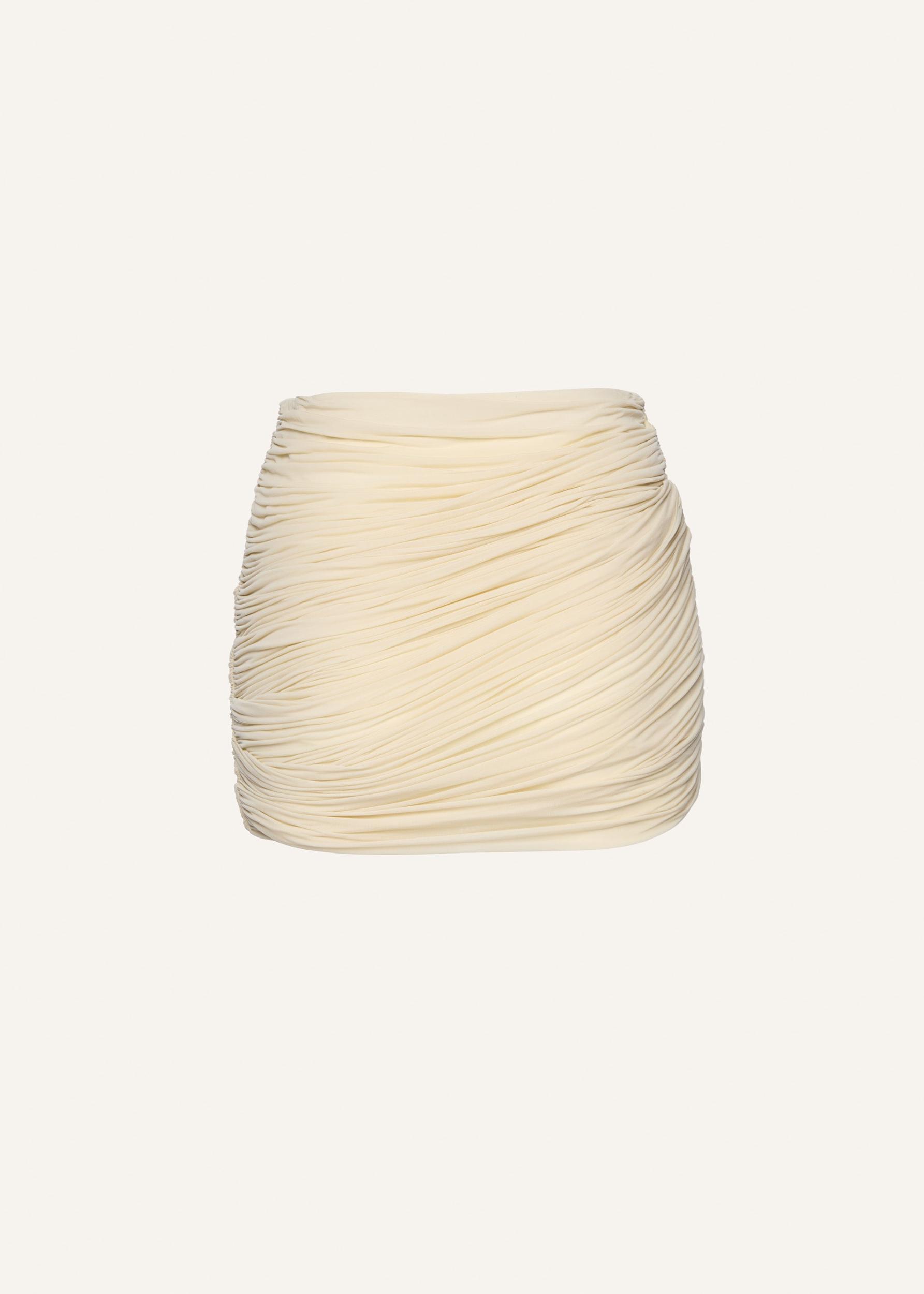 A classic wrap mini skirt with all over ruching, made from stretchy cupro fabric.