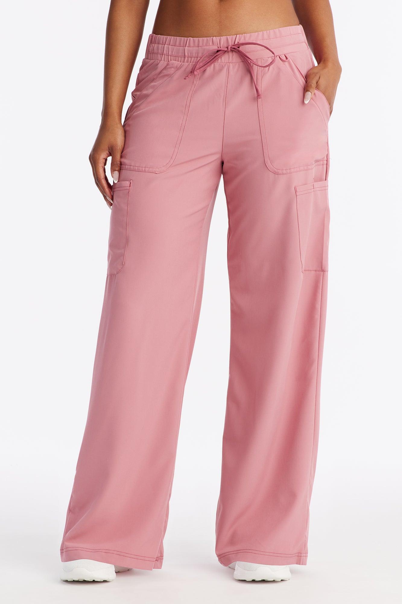 Cure Me Wide Leg Knit Waistband Scrub Bottoms - Mauve Female