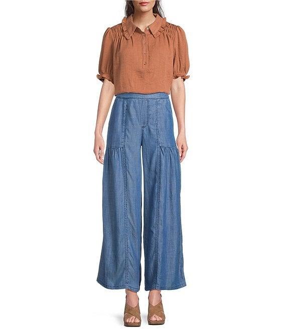 Current Air Half Sleeve Smocked Picot Point Collar Top
