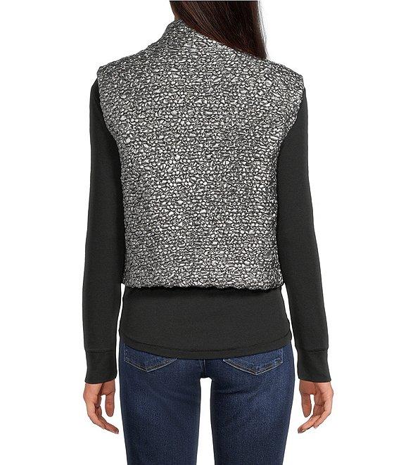 From Current Air, this vest features: Quilted fabrication Boxy silhouette High neckline Sleeveless Straight hemline Front snap button closure Approx.19.25" length Nylon/polyester Machine wash cold/ line dry Imported.
